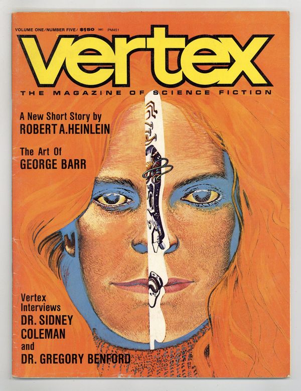 "The Magazine of Science Fiction." December 1973. Cover by Kevin Davidson. SF stories by Stephen Goldin, Allan Asherman, William Rotsler, Robert A. Heinlein ("No Bands Playing, No Flags Flying"), George R. R. Martin ("Dark, Dark Were The Tunnels"), Terri E. Pinckard, Larry Eisenberg, Richard Ashby, Steven Utley, & Herman Wrede. A Roundtable Interview with Dr. Sidney Coleman and Dr. Gregory Benford. Plus essays by Lawrence Neal, Raymond Friday Locke, Igor Bohassian, James Sutherland, & William Rotsler. Illustrations by Stevan Arnold, Cora Lee Healy, Tim Kirk, Alicia Austin, Susan Jenkins, Grant Canfield, Monte Rogers, R. Mohr, George Barr, & Don Davis. 8.5 x 11, primarily b&w, 98 slick pages. Cover price $1.50.