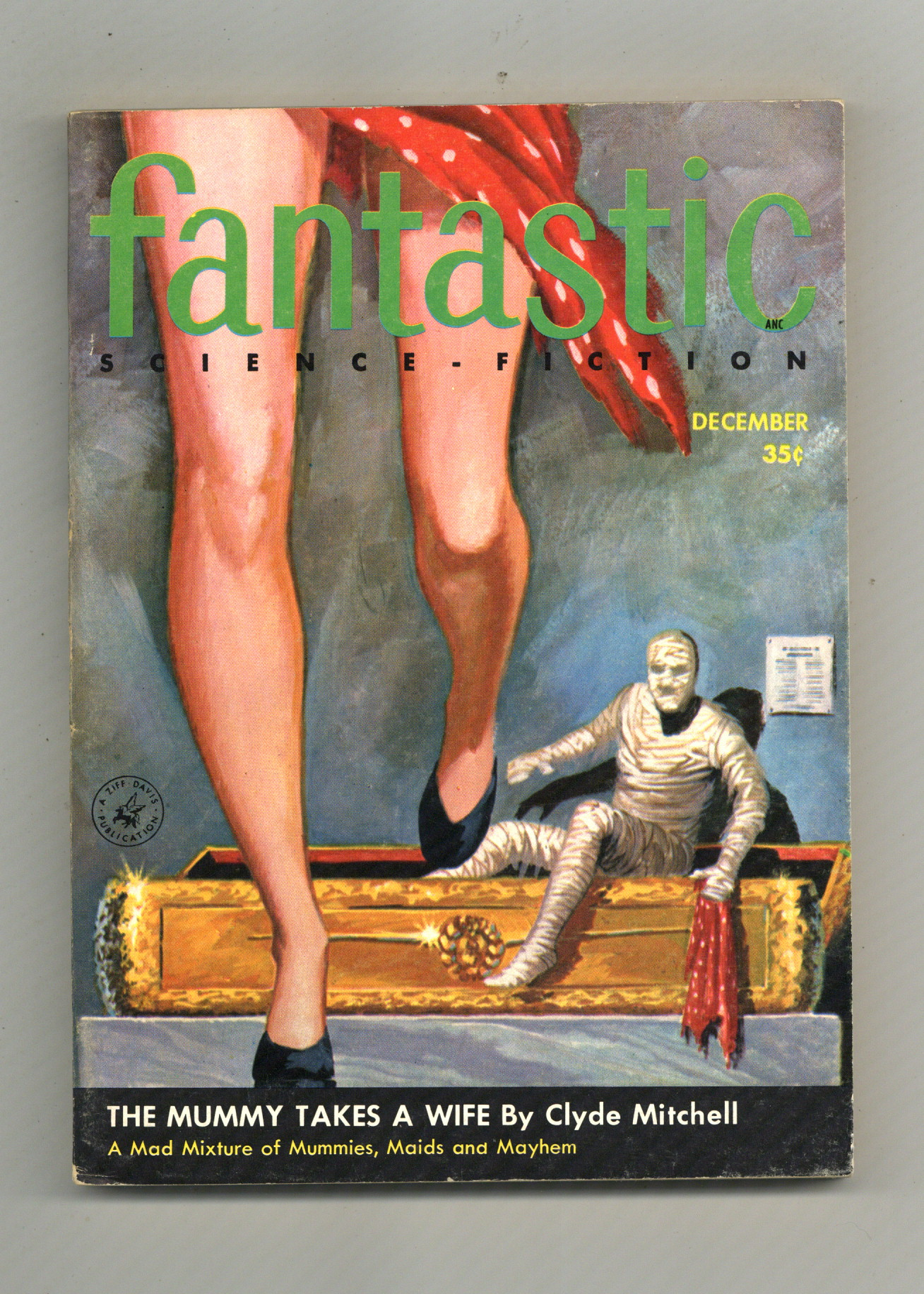 Published Dec 1956 by Ziff Davis.$16.00December 1956. Science fiction and fantasy stories by Stephan Wilder, Randall Garrett, Darius John Granger, Harlan Ellison (as "Lee Archer"), Leonard G. Spencer, and Kate Wilhelm. Four Virgil Finlay illustrations. Cover by Edward Valigursky. 5.5-in. x 7.75-in.; black and white; 128 newsprint pages. Cover price $0.35.