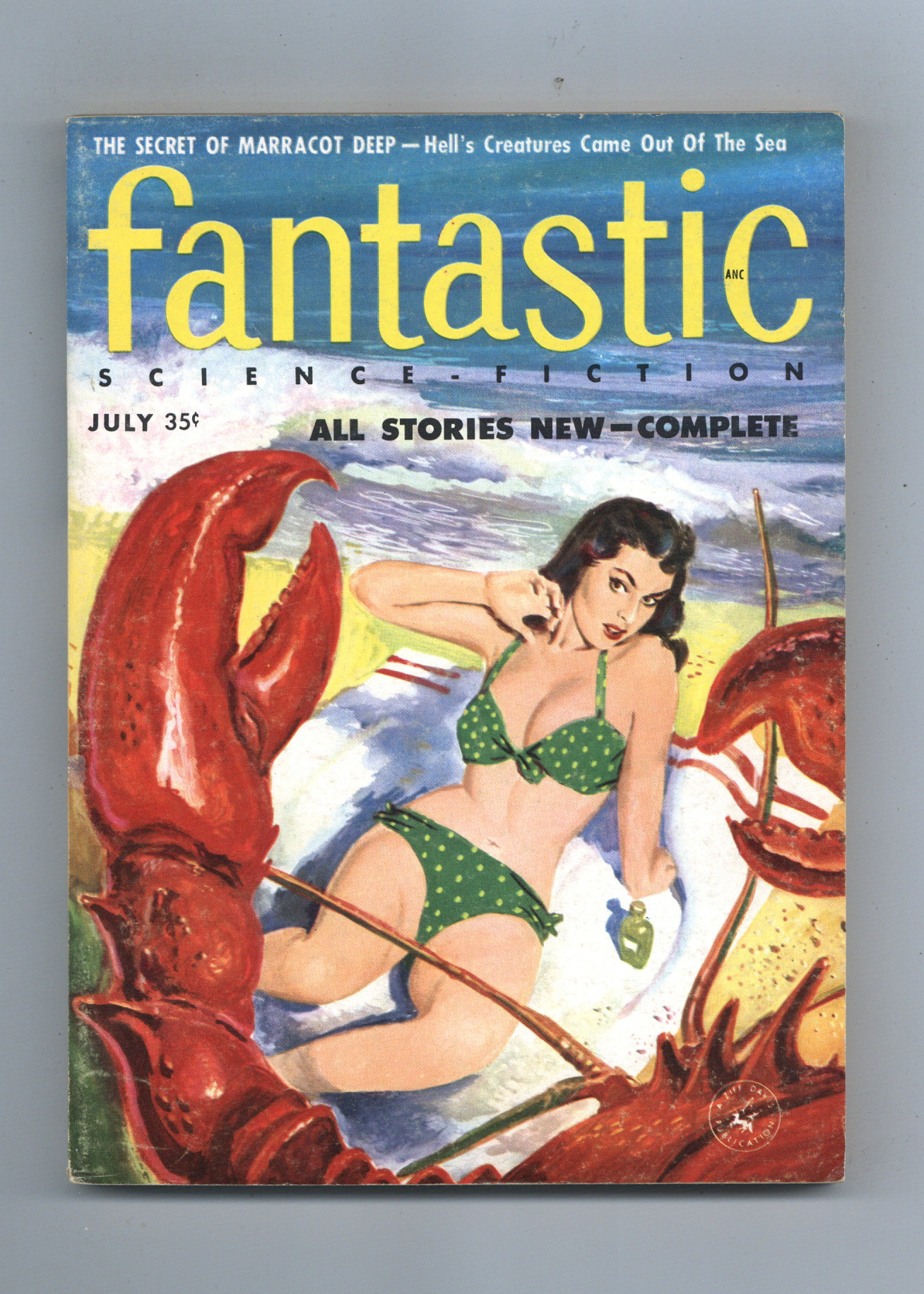 Published Jul 1957 by Ziff Davis.$16.00July 1957. Science fiction and fantasy stories by Henry Slater, Robert Silverberg, Ralph Burke, Stanley Mullen, Calvin Knox, and Hall Thornton. Virgil Finlay illustration. Cover by Edward Valigursky. 5.5-in. x 7.75-in.; black and white; 132 pages. Cover price $0.35.