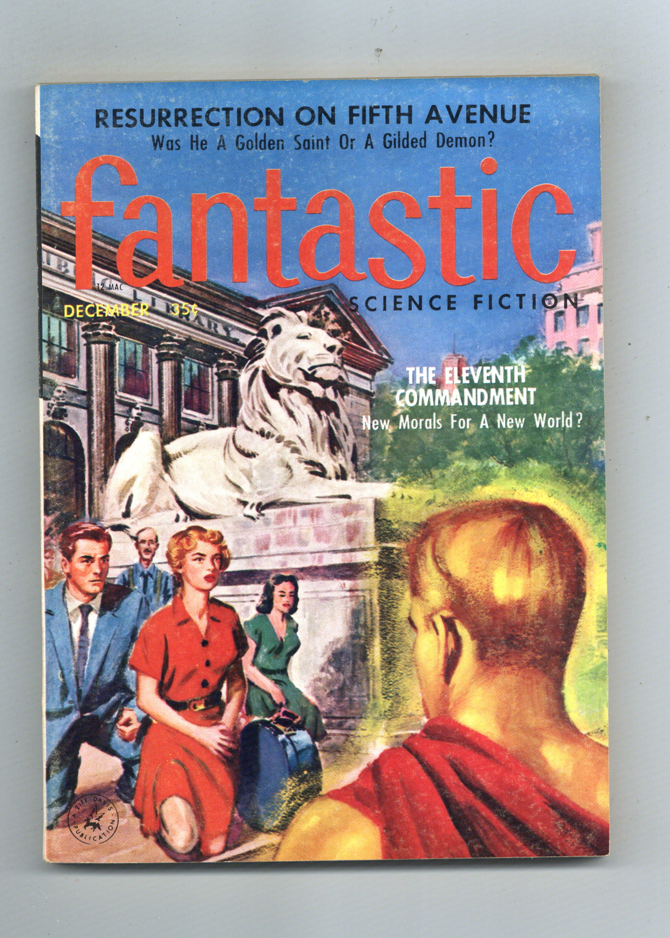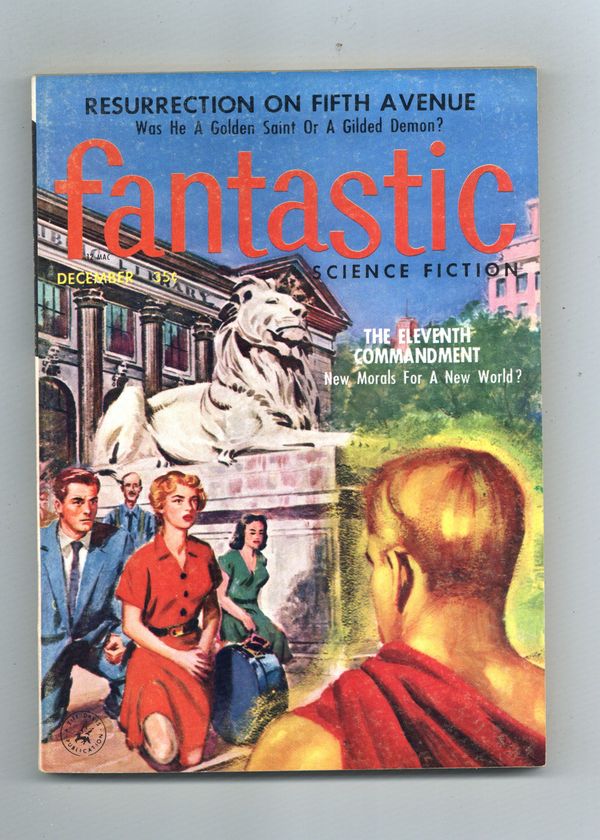 Published Dec 1957 by Ziff Davis.$16.00December 1957. Science fiction and fantasy stories by Henry Slater, Robert Silverberg, Ralph Burke, Stanley Mullen, Calvin Knox, and Hall Thornton. Virgil Finlay illustration. Cover by Edward Valigursky. 5.5-in. x 7.75-in.; black and white; 128 newsprint pages. Cover price $0.35.