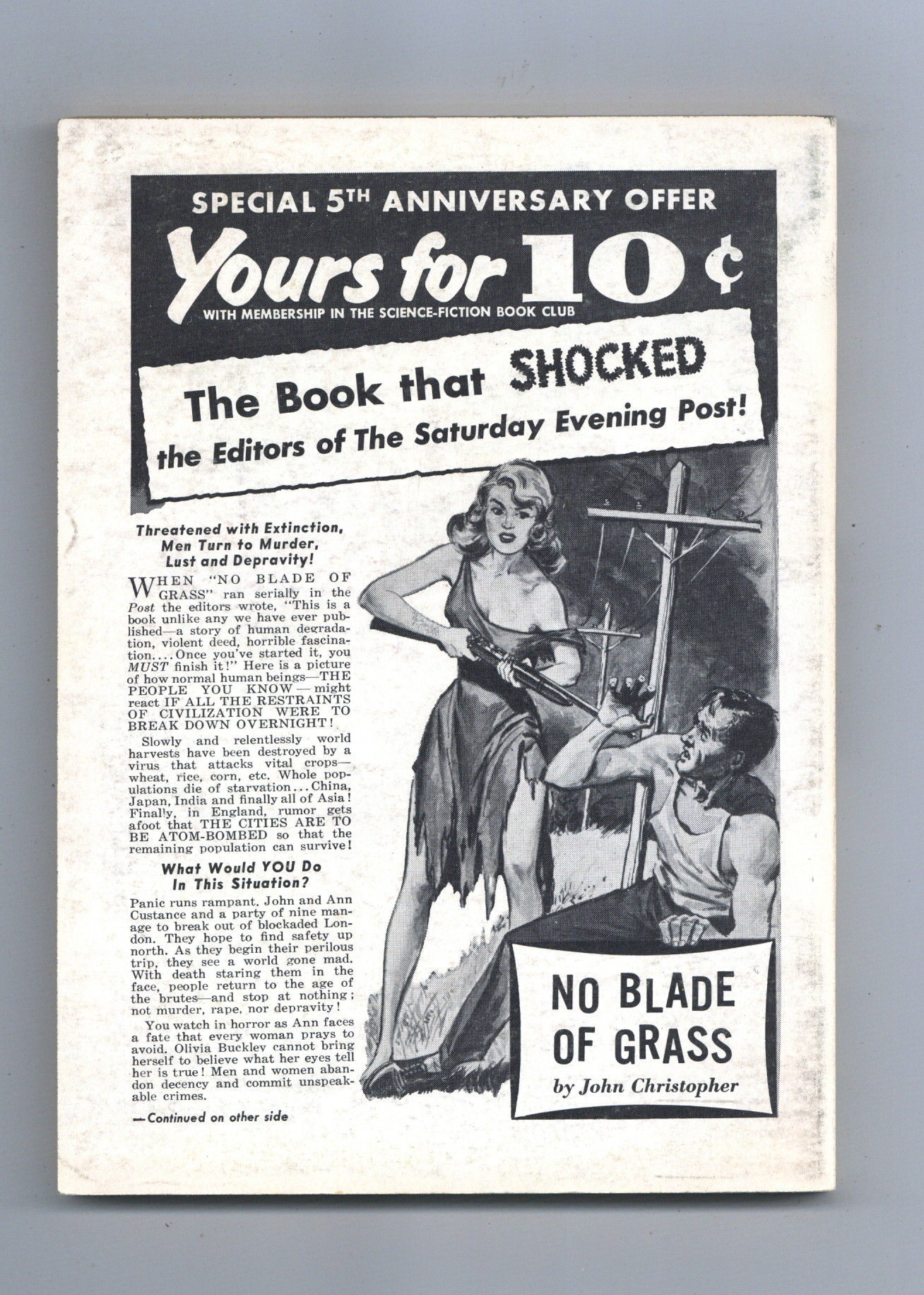 Published Aug 1958 by Ziff Davis.$20.00August 1958. Science fiction and fantasy stories by Henry Slater, Robert Silverberg, Ralph Burke, Stanley Mullen, Calvin Knox, and Hall Thornton. Virgil Finlay illustration. Cover by Edward Valigursky. 5.5-in. x 7.75-in.; black and white; 128 newsprint pages. Cover price $0.35.