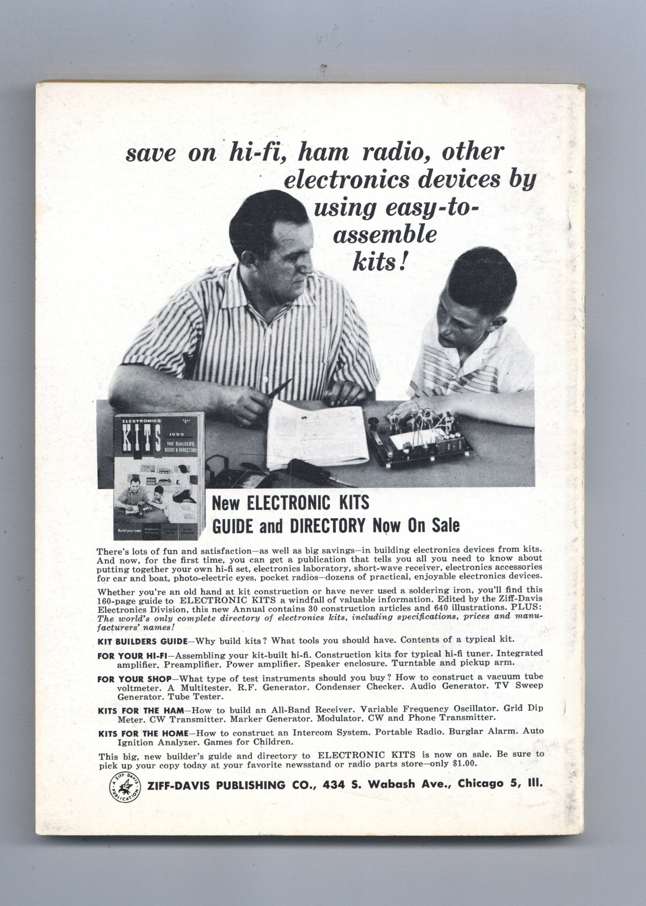 Published Feb 1959 by Ziff Davis.$17.00February, 1959. Cover by Edward Valigursky. Science fiction and fantasy stories by Marion Zimmer Bradely, Tom Godwin, John Christopher, A. Bertram Chandler, and Jack Sharkey. Illustrations by Summers. 5.5-in. x 7.75-in.; black and white; 130 newsprint pages. Cover price $0.35.