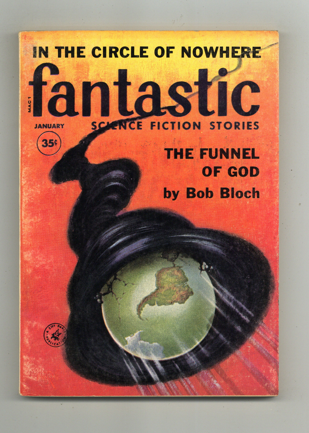 Published Jan 1960 by Ziff Davis.$17.00Cover by Albert Nuetzell. Stories by Robert Bloch, Keith Laumer, Will Worthington, Irving E. Cox Jr, David R. Bunch, Evelyn Goldstein. Illustrations by Mel Varga, Leo Summers. 5.5-in. x 7.75-in.; black and white; 130 newsprint pages. Cover price $0.35.