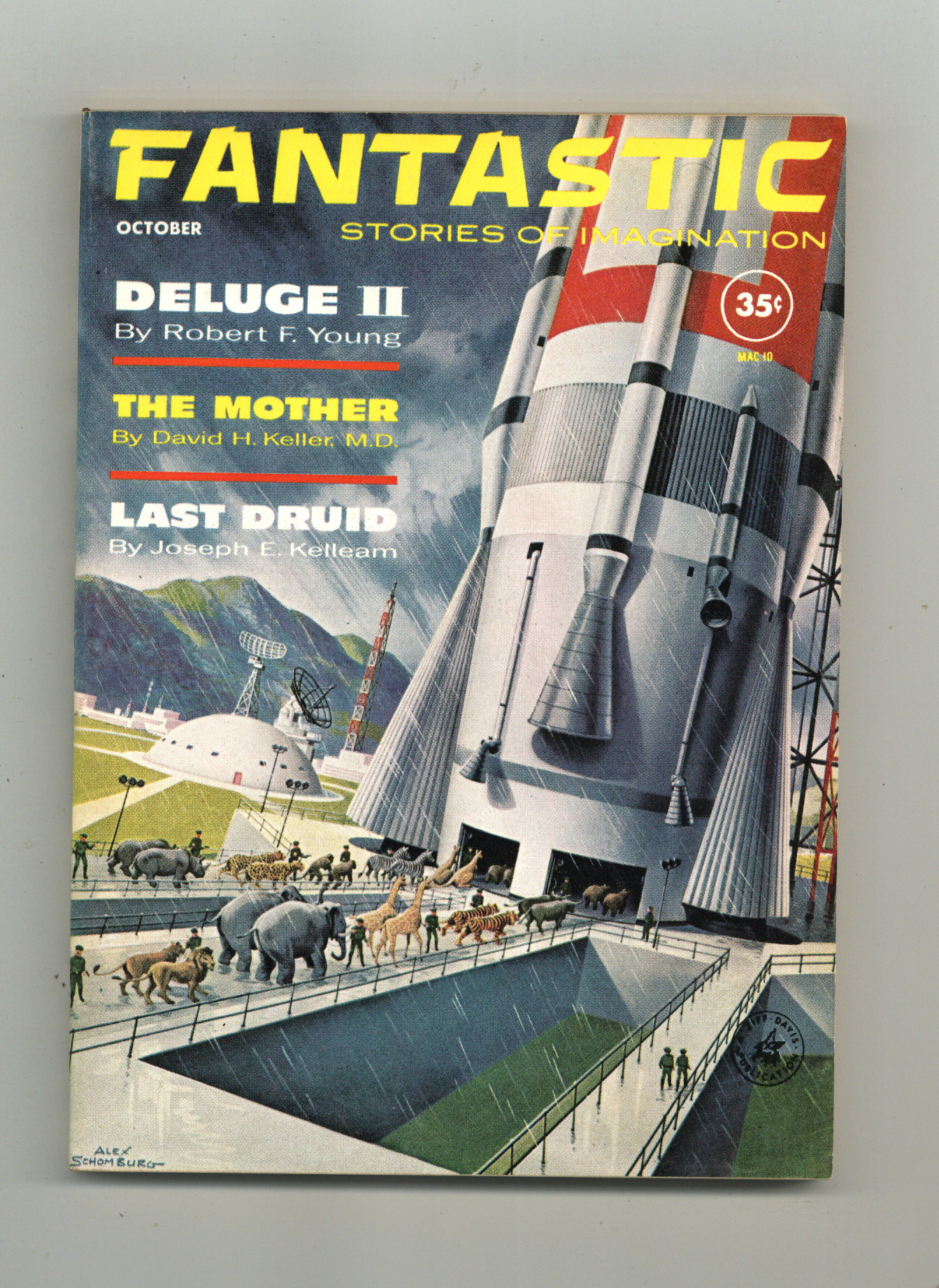 Published Oct 1961 by Ziff Davis.$17.00Volume 10, Issue 10 - October 1961. Features "Deluge II" by Robert F. Young, "The Mother" by Devid H. Keller, and "Last Druid" by Joseph E. Kelleam. 5.5-in. x 7.75-in.; black and white; 130 newsprint pages. Cover price $0.35.