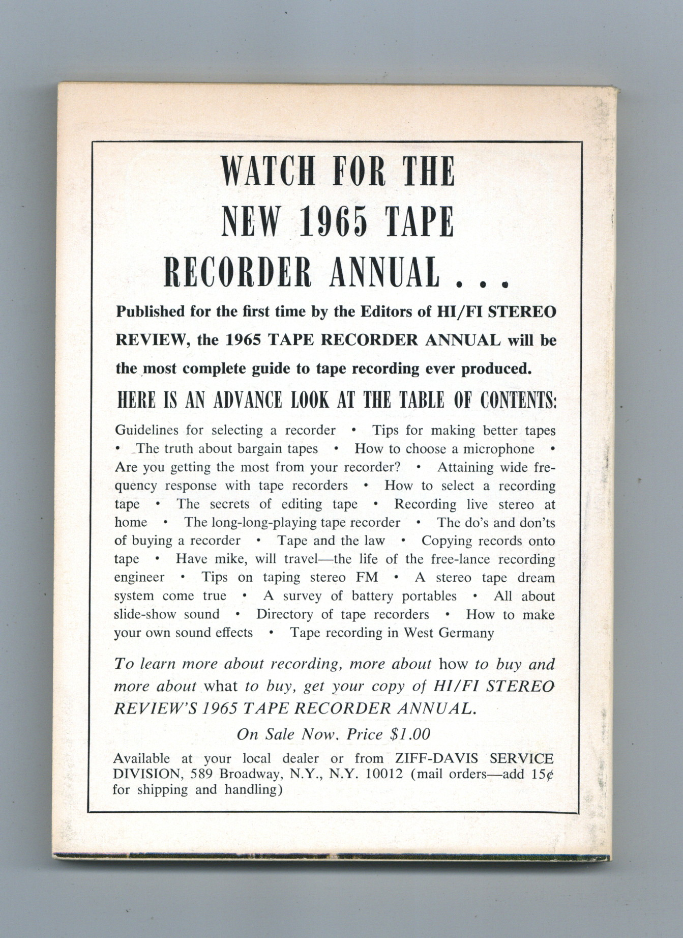Published Dec 1964 by Ziff Davis.$10.00December, 1964. 5.5-in. x 7.75-in.; black and white; 162 newsprint pages. Cover price $0.50.
