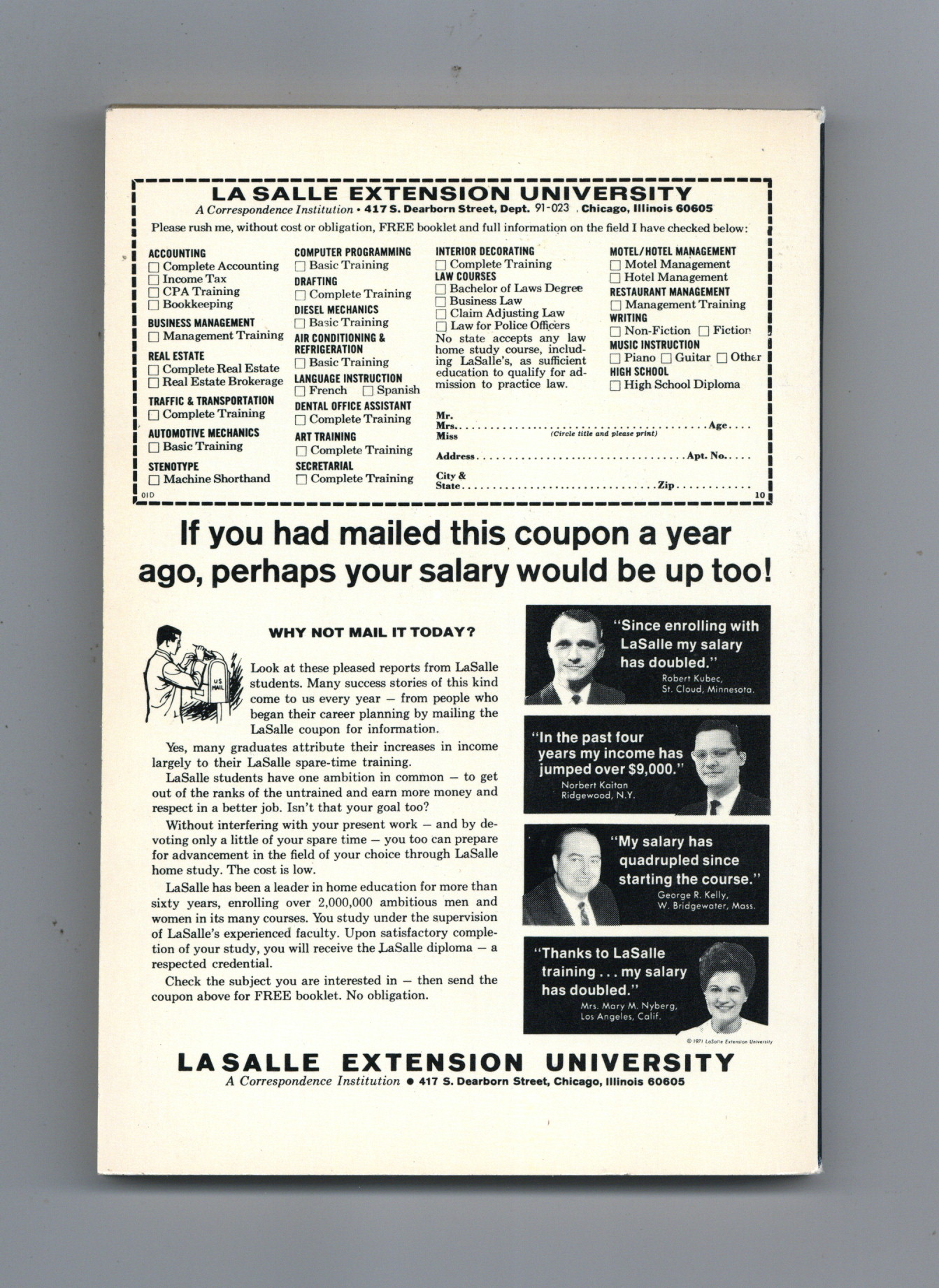 Published Sep 1973 by Ziff Davis.$8.49Cover by Joe Staton. Stories by Janet Fox, John K. Diomede, Glen Cook, Karl T. Pflock, Barry Malzberg, Alexia & Cary Pansmin. Illustrations by Michael Kaluta, Michael Nally, Billy Graham, Joe Staton, Jeff Jones. 5.5-in. x 7.75-in.; black and white; 144 newsprint pages. Cover price $0.60.