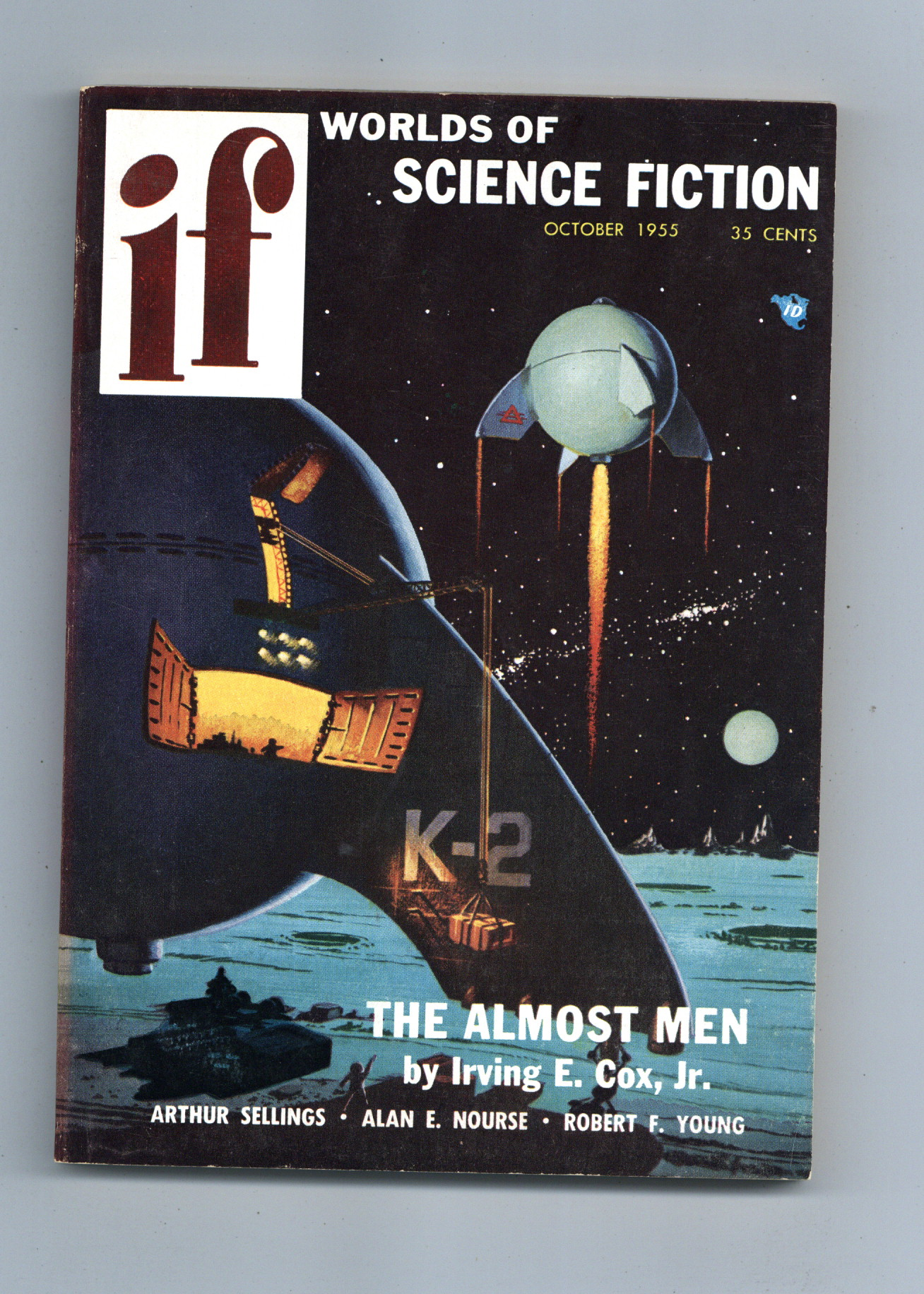 Published Oct 1955 by Quinn Publishing Co..$38.00October 1955. Cover by Ed Valigursky. Stories: "The Almost-Men" by Irving E. Cox, Jr., "Prisoners of Earth" by Robert F. Young, "The Proxies" by Arthur Sellings, "Juvenile Delinquent" by Edward W. Ludwing, "Slow Burn" by Henry Still, "Last Rites" by Charles Beaumont, "Meeting of the Board" by Alan E. Nourse. 5.5-in. x 7.5-in.; 120 Pages, B&W. Cover price $0.35.