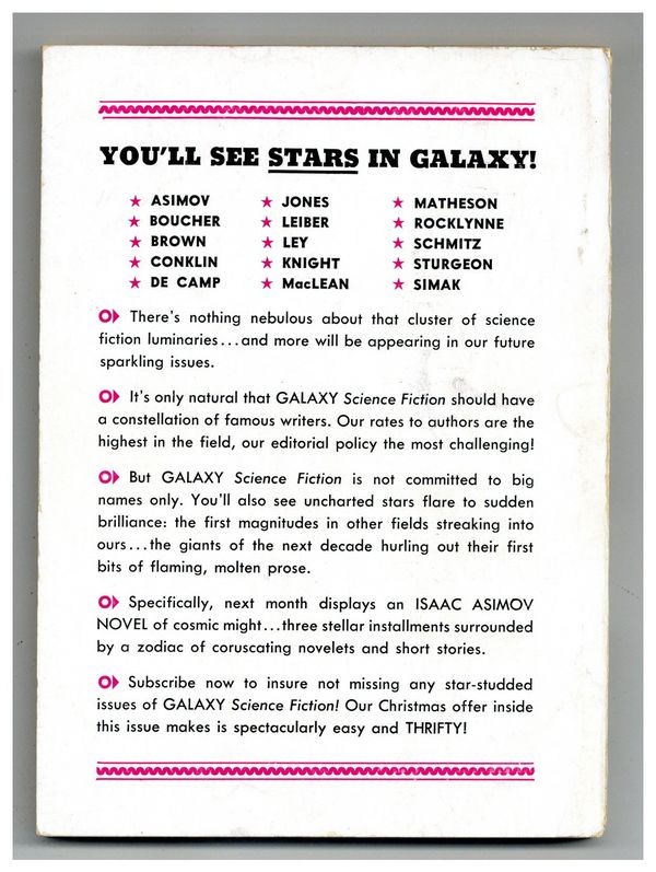 Published Dec 1950 by Galaxy Publications.$2.65- Water damage: Extensive. Staple rust: Extensive.