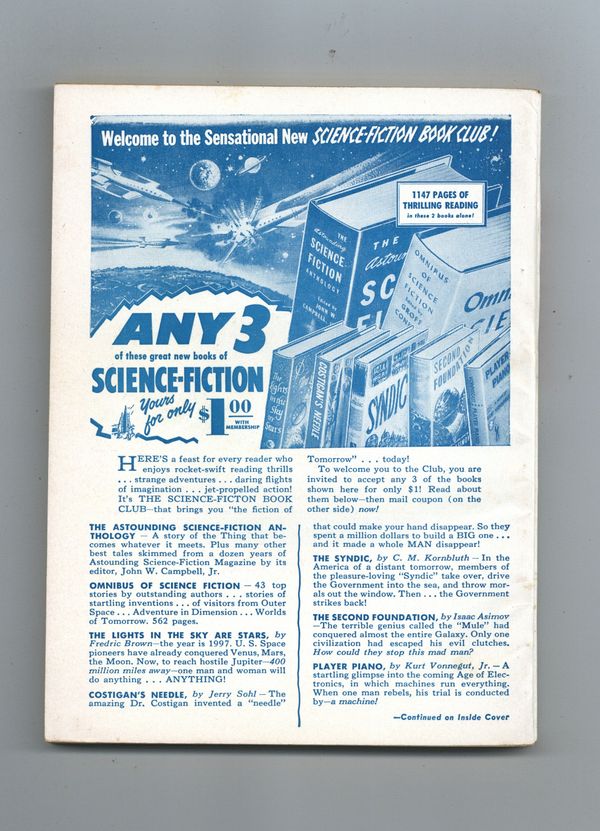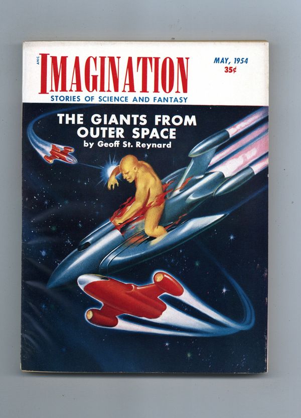 May, 1954 Volume 5, Issue 5. Cover by H. W. McCauley. "The Giants from Outer Space" by Geoff St. Reynard, "Off-Limites Planet" by Robert Sheckley, "Cosmic Santa Claus" by Daniel F. Galouye, "Prelude to Space" by Robert W. Haseltine, "Cancer World" by Harry Warner Jr, and "Spies Die Hard!" by Arnold Mormor. 5-3/8 in. x 7-5/8 in; black and white; 162 pages. Cover price $0.35.
