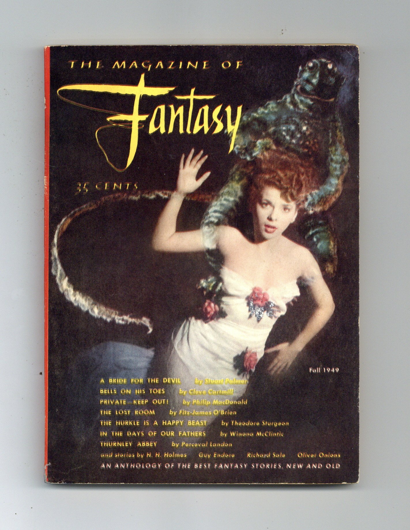 Published Sep 1949 by Mercury Publications.$45.00Fall, 1949. Cover by Bill Stone. Stories: "Bells on His Toes" by Cleve Cartmill, "Thurnley Abbey" by Perceval Landon, "Private-Keep Out!" by Philip MacDonald, "The Lost Room" by Fitz-James O'Brien, "The Hukle Is a Happy Beast" by Theodore Sturgeon, "Review Copy" by H. H. Holmes, "Men of Iron" by Guy Endore, "A Bride for the Devil" by Stuart Palmer, "Rooum" by Oliver Onions, "Perseus Had a Helmet" by Richard Sale, and "In the Days of Our Fathers" by Winona McClintic. Softcover, 5.5-in. x 7.5-in., 132 pages, B&W. Cover price $0.35.