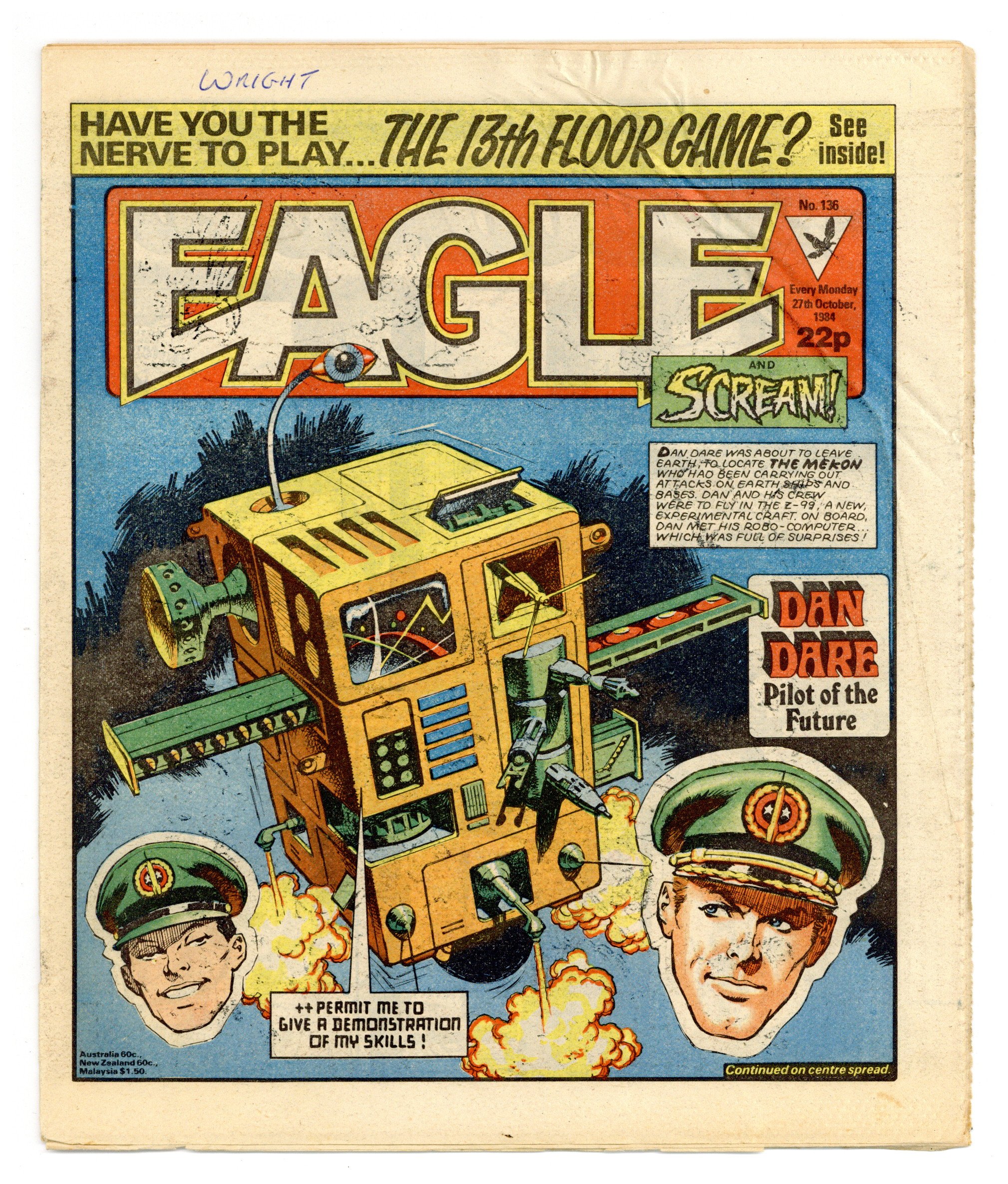 October 27th, 1984. Dan Dare, plus other features. Published in the United Kingdom, 8-1/2-in. x 11-1/2-in, 32-pages including cover, all newsprint stock. Mix of color and black/white interior.