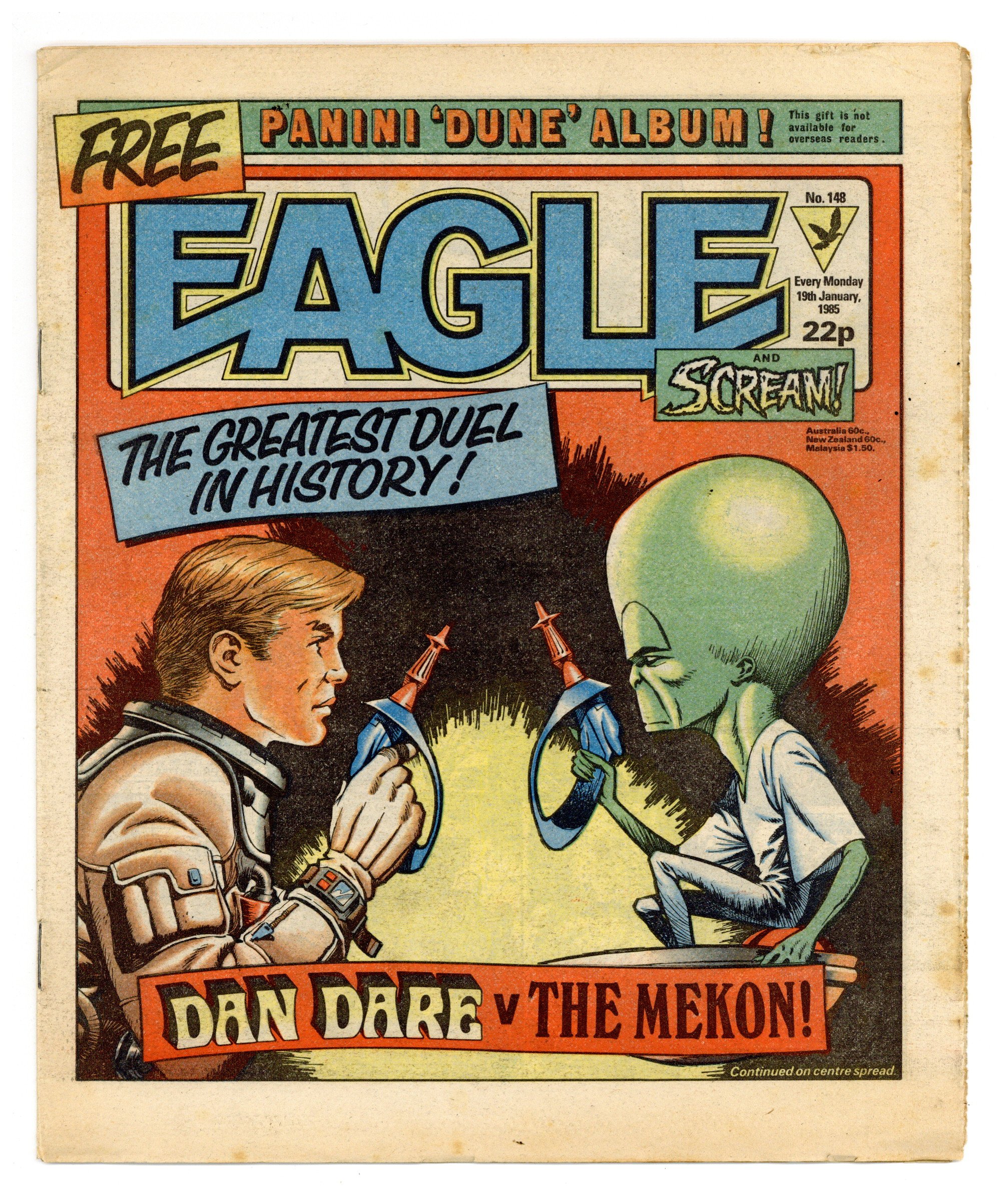 January 19th, 1985. Dan Dare, plus other features. Published in the United Kingdom, 8-1/2-in. x 11-1/2-in, 32-pages including cover, all newsprint stock. Mix of color and black/white interior. NOTE: Does not include Panini 'Dune' Sticker Album (sold separately).