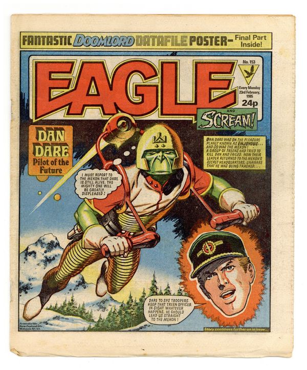 February 23rd, 1985. Dan Dare, plus other features. Published in the United Kingdom, 8-1/2-in. x 11-1/2-in, 32-pages including cover, all newsprint stock. Mix of color and black/white interior.