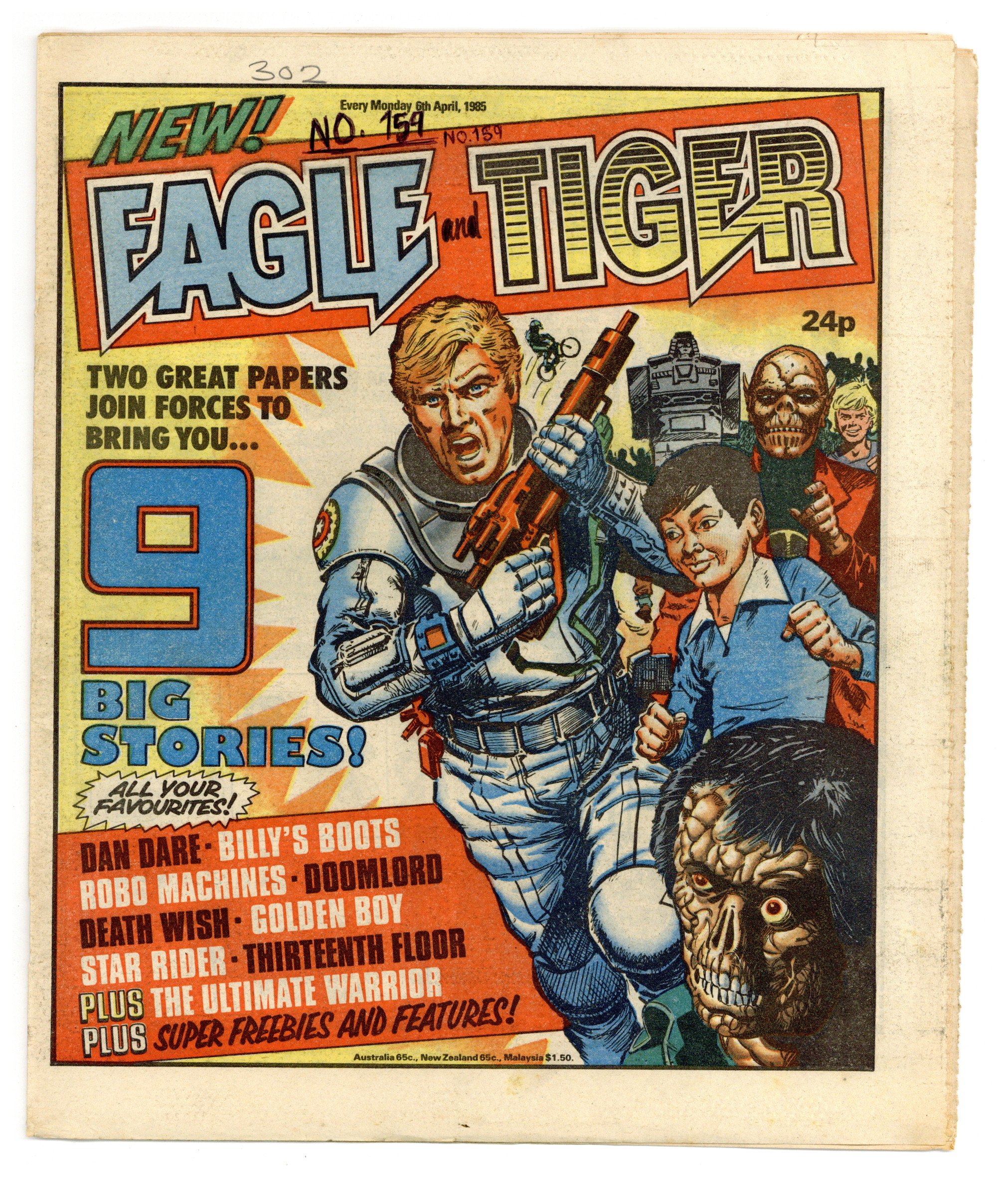 NOTE: Title becomes Eagle and Tiger #159-221 - April 6th, 1985. (not numbered) 1st issue of Eagle and Tiger papers combining into one paper. Published in the United Kingdom, 8-1/2-in. x 11-1/2-in, 32-pages including cover, all newsprint stock. Mix of color and black/white interior.