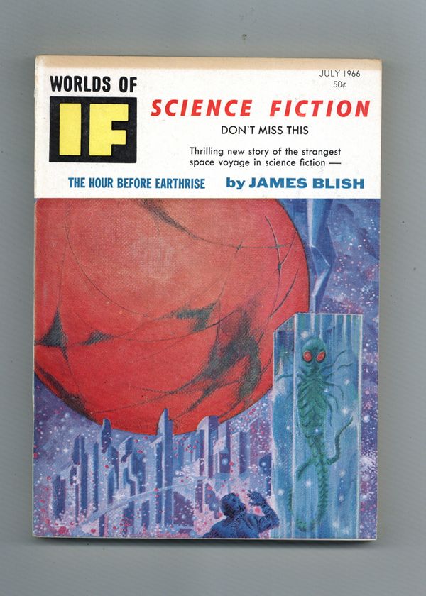 Published Jul 1966 by Quinn Publishing Co..$28.00July 1966. Cover by Morrow. Stories: "Bircher" by A. A. Walde, "Cybernia" by H. H. Hollis, "The Hour Before Earthrise" by James Blish, "Earthblood" by Keith Laumer and Rosel G. Brown, "Feodar's Box" by Robert E. Lory, and "The Man From When" by Dannie Plachta. 5.25-in. x 7.5-in.; 162 Pages, B&W newsprint pages. Cover price $0.50.