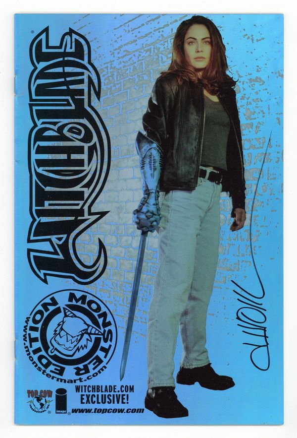 Monstermart.com Monster HOLOFOIL Edition of the Top Cow Comics, Witchblade.com Exclusive cover. (W) David Wohl (P) Michael Turner (I) D-Tron (C) Jonathan D. Smith In celebration of the much anticipated Witchblade live action series premiere, Top Cow Productions is proud to offer you the acclaimed first issue of Witchblade with a brand new, full color photograph cover of series star, Yancy Butler! All the action and adventure of the Witchblade series comes to life in this incredible photo image! Revisit the ground- breaking first issue and enjoy a photo what will soon be the most talked about new television series of 2000, Witchblade! FC, 32pg