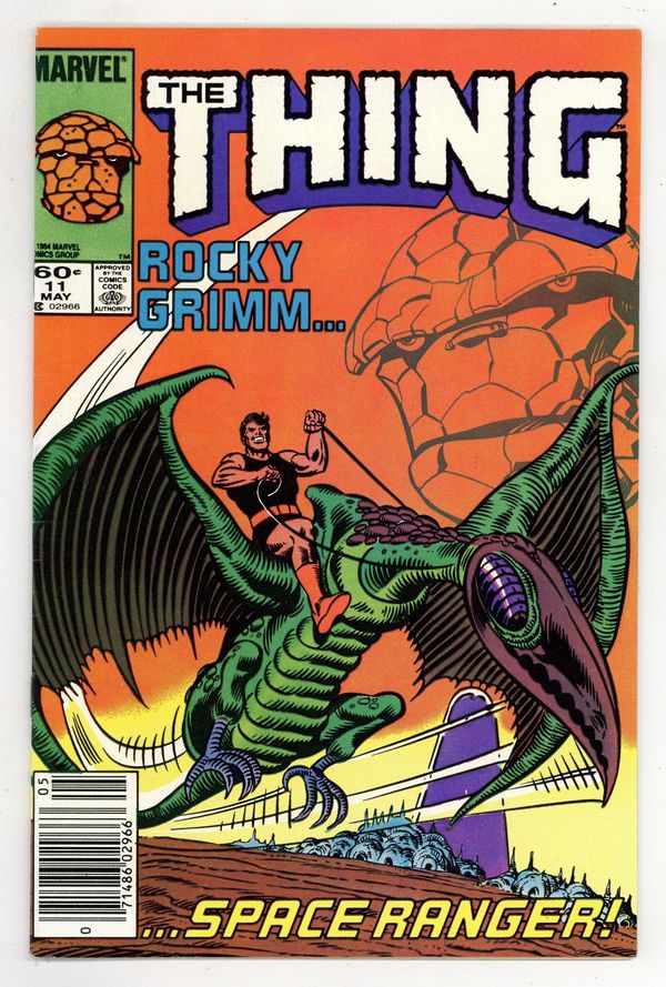 Mark Jeweler Advertisement Insert Variant. Rocky Grimm, Space Ranger: Part 1 of 12 - Story by John Byrne. Art by Ron Wilson and Joe Sinnott. Story continued from Marvel Super Heroes Secret Wars (1984) #12. Alone in self exile on the mysterious Battleworld, Ben Grimm, now able to switch back and forth from the Thing to human form, contemplates his next move. However, when his only means of seeing Earth again is stolen, Ben sets out on a perilous quest to retrieve it. 32 pages, FC NOTE: Check out Marvel Super Heroes Secret Wars (1984) #1-12 to see what happened between last issue and this one. Cover price $0.60.