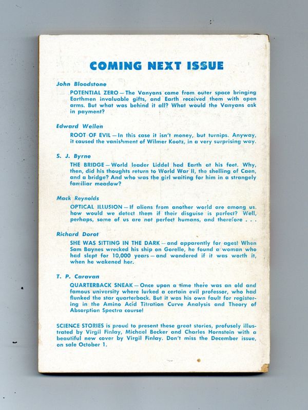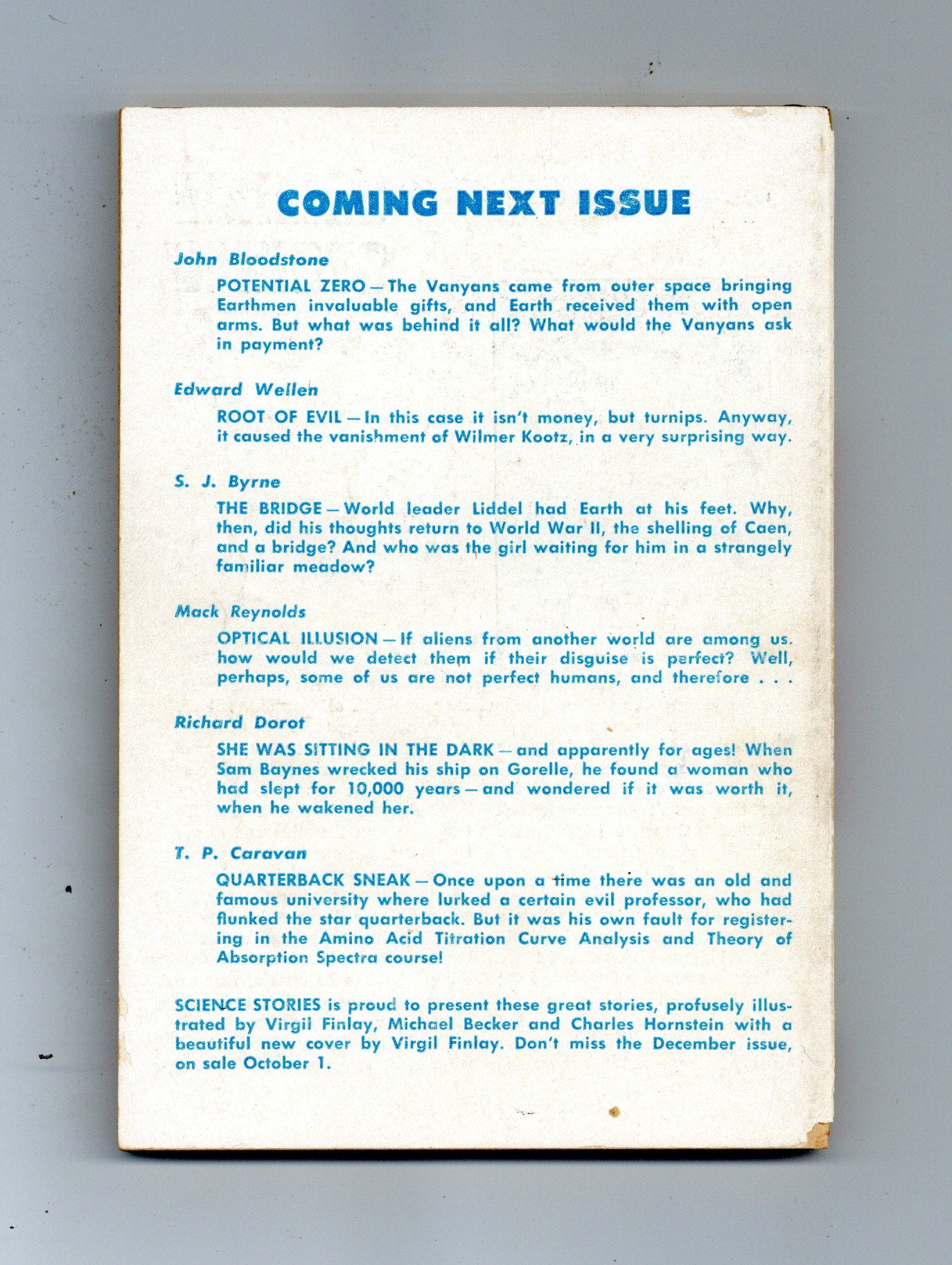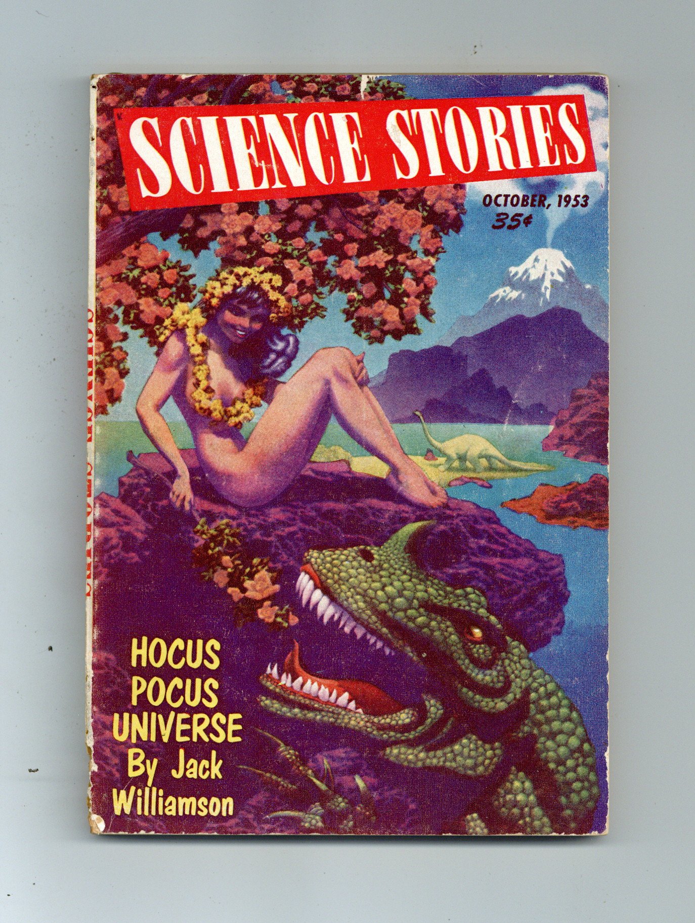 October 1953. Cover art by Hannes Bok. Science Stories: "Hocus-Pocus Universe" by Jack Williamson, "Wise Guy" by R. J. McGregor, "Flight To Utopia" by Jan Tourneau and "Battle In The Sky" by Robert Moore Williams. Interior art by Hannes Bok, Michael Becker, Charles Hornstein, J. Allen St. John, Burdoff and Pierce. 5.25" x 7.5", 130 pages, B&W. Cover price $0.35.
