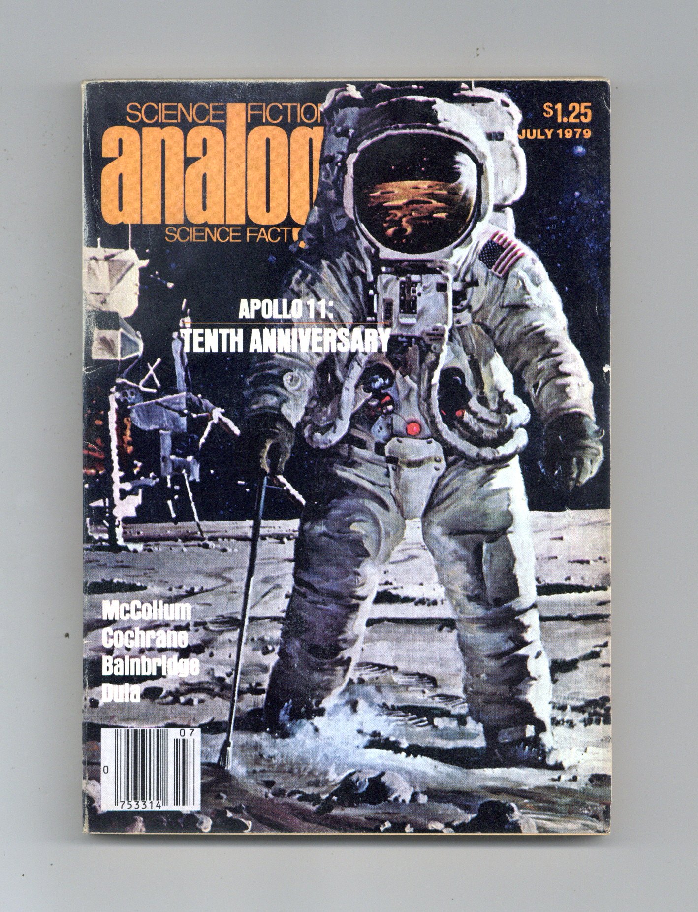 July 1979. Cover by Robert McCall. Stories: "Class Six Climb"(Part 2) by William E. Cochrane, "Beer Run" by Michael McCollum, "A Few Last Words for the Late Immortals" by Michael Bishop, "Time's Window" by Bob Buckley, "Dolphin Mission" by George J. Annas, "A Quiet, Rainy Afternoon" by Paul Nahin, "Remodeling of Eve" by Lee Cory, and "One Way From New York" by Lee Robinson. Science Fact article: "American Enthusiasm for Spaceflight" by William Sims Bainbridge. Poem: "20 July 1969" by W. W. Cooper. Softcover, 5.25-in. x 7.5-in.; 178 newsprint pages, B&W. Cover price $1.25.
