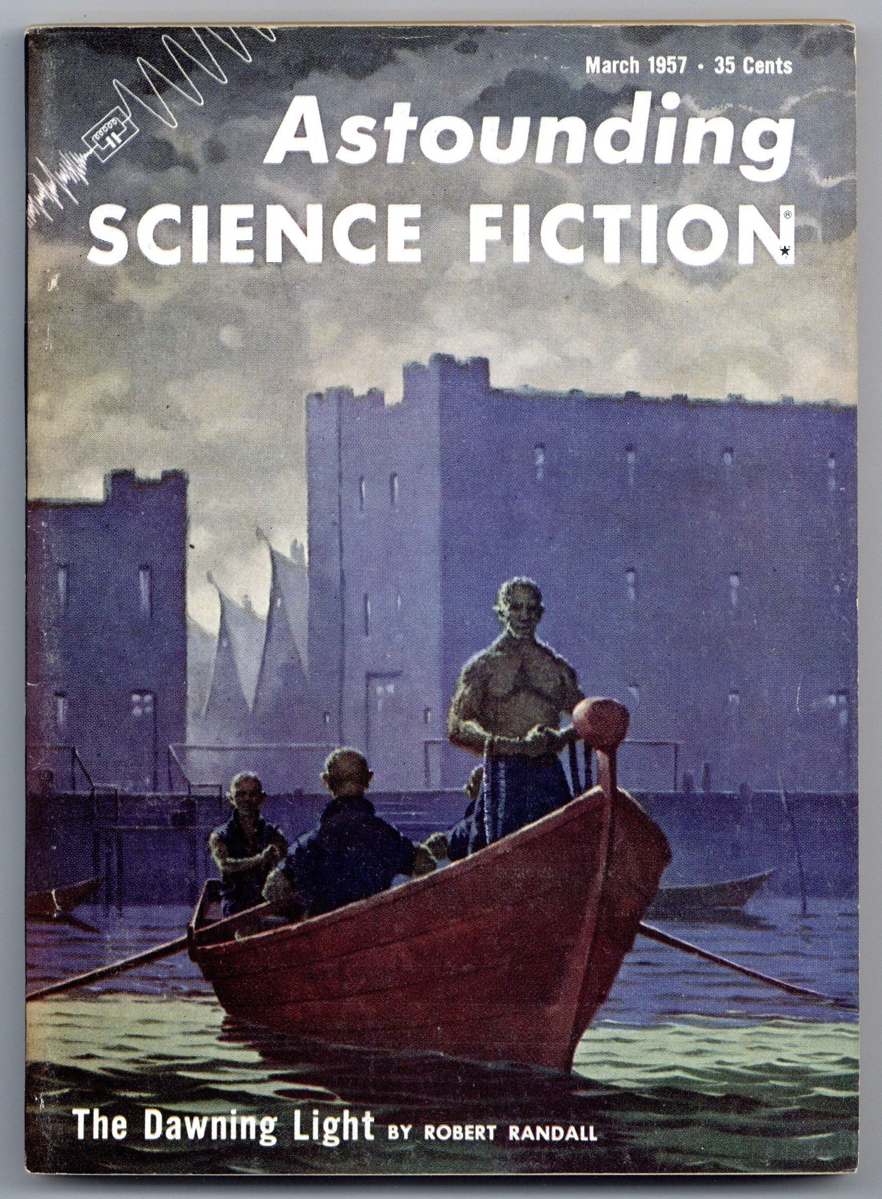 Published Mar 1957 by Street & Smith.$6.70March 1957. Cover by Van Dongen. Stories: "The Dawning Light" (Part 1 of 3) by Robert Randall, "How Allied" by Mark Clifton, "A Matter of Security" by W.T. Haggert, "Man of God" by Stephen Bartholomew, and "Marius" by Poul Anderson. Article: "Planets Have An Air About Them" by Isaac Asimov. Softcover, 5.5-in. x 7.75-in.; 162 newsprint pages, B&W. Cover price $0.35.