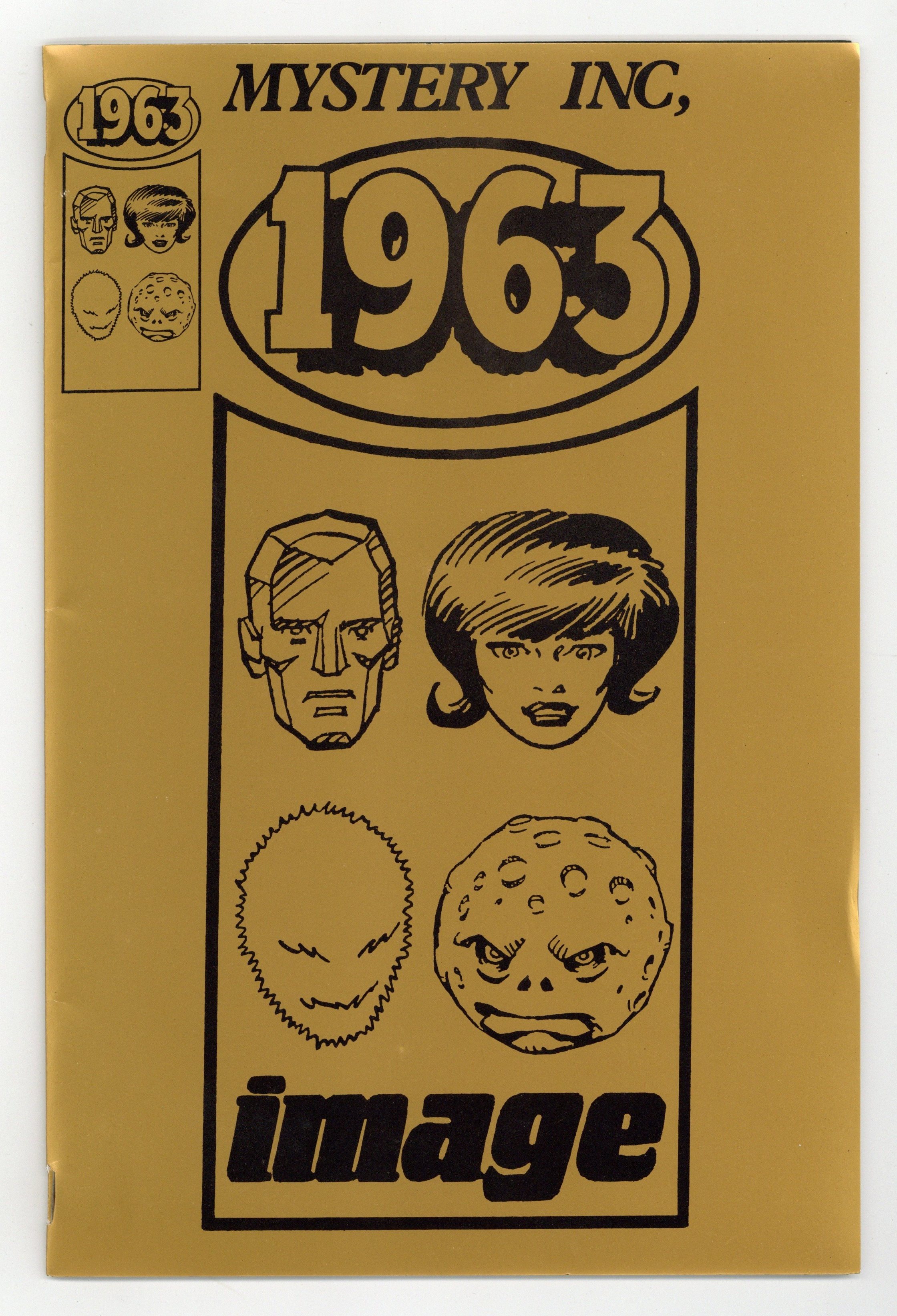 $115.00Gold Edition. Has new outer gold cover with bound-in certificate of authenticity. This edition is signed and numbered by Dave Gibbons and limited to 500 copies. Cover pencils by Rick Veitch, inks by Dave Gibbons. Mayhem on Mystery Mile!, script by Alan Moore, pencils by Rick Veitch and Murphy Anderson, inks by Dave Gibbons and Murphy Anderson; things start going wrong with the automatic defenses of the underground fortress of Mystery Incorporated when the Neon Queen sees a strange man reverse waling in the Maybe Machine room; Fantastic Four homage. Spoof of the old Marvel Bullpen Bulletins pages. A fake letter page with letters for an issue that was never published. Pin-ups of Crystal Man, Planet and Kid Dynamo from Mystery Incorporated. Pin-up of Neon Queen from Mystery Incorporate by Melinda Gebbie. Phony ad for courses in speaking better English by Veitch. 36 pgs. $1.95.
