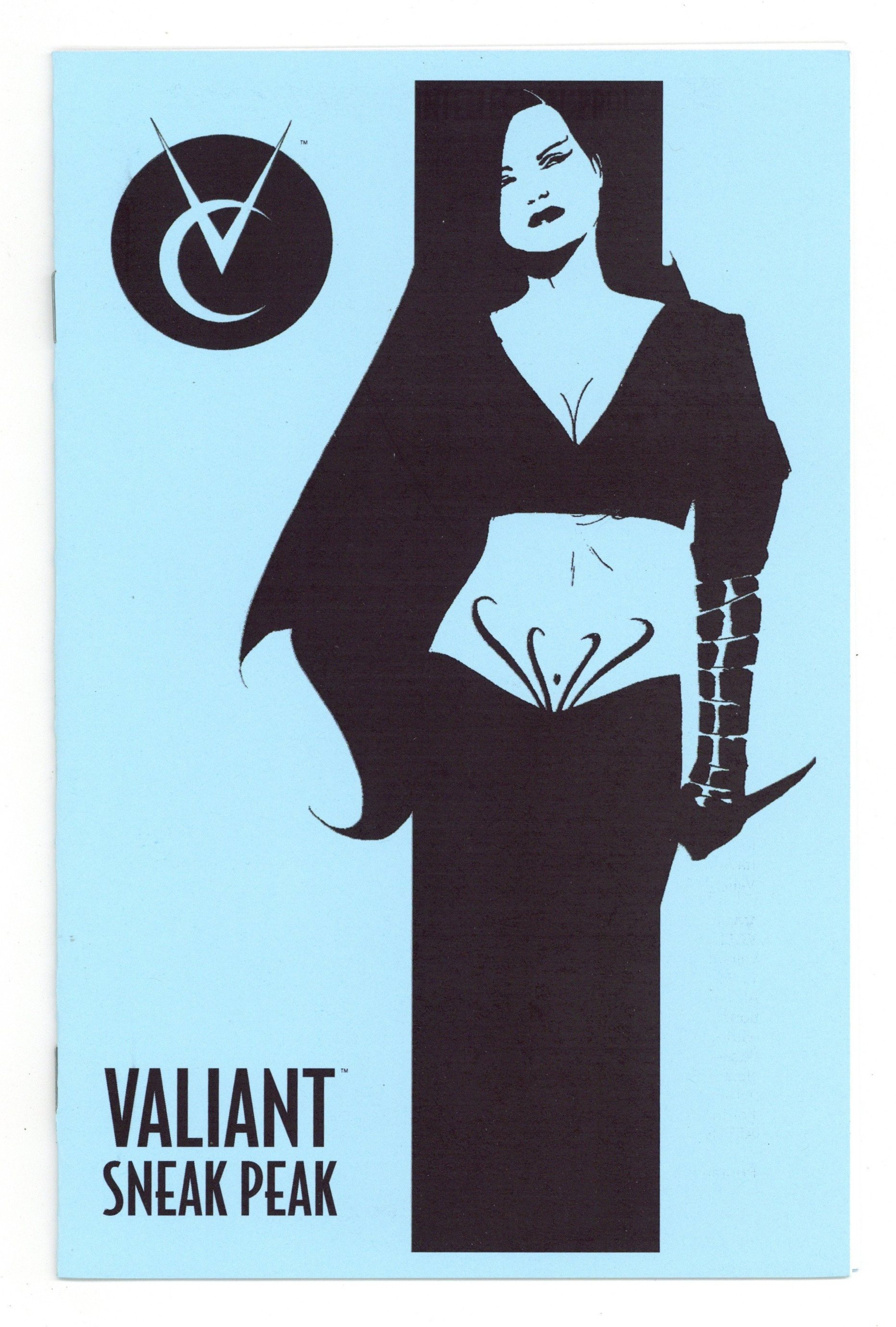San Diego Comic Con Exclusive Preview Ashcan Numbered & Limited to 100. This was a Dynamic Forces release published by Valiant Intellectual Properties, not by Valiant Entertainment. It features sketches of characters with the same namesakes as the original characters from the Valiant Universe, but often very different character interpretations. These character interpretations never appear anywhere else as VIP eventually lost a legal battle over ownership rights to the trademarked names. 5-1/2" x 3-1/2", b&w, 16 pages. NOTE: Cover title has "Peak" spelled incorrectly, but the error is corrected in the indicia.