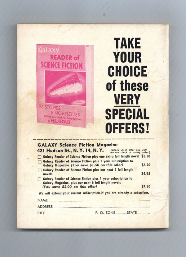 Published Sep 1952 by Galaxy Publications.$2.65- Front cover detached 5%. Back cover detached 5%. Staple rust: Slight.