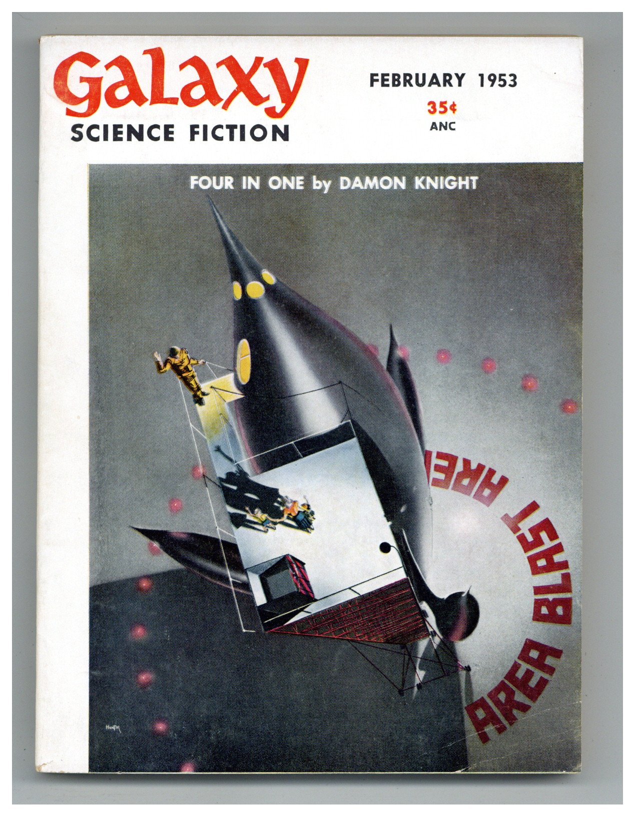 Published Feb 1953 by Galaxy Publications.$8.60February 1953. Cover by Mel Hunter. Stories: "Four in One" by Damon Knight, "Watchbird" by Robert Sheckley, "Protective Mimicry" by Algis Budrys, "Saucer of Loneliness" by Theodore Sturgeon, "Know Thy Neighbor" by Elisabeth R. Lewis, and "Ring Around the Sun"(Conclusion) by Clifford D. Simak. 5.25-in. x 7.5-in.; 160 Pages, B&W. Cover price $0.35.
