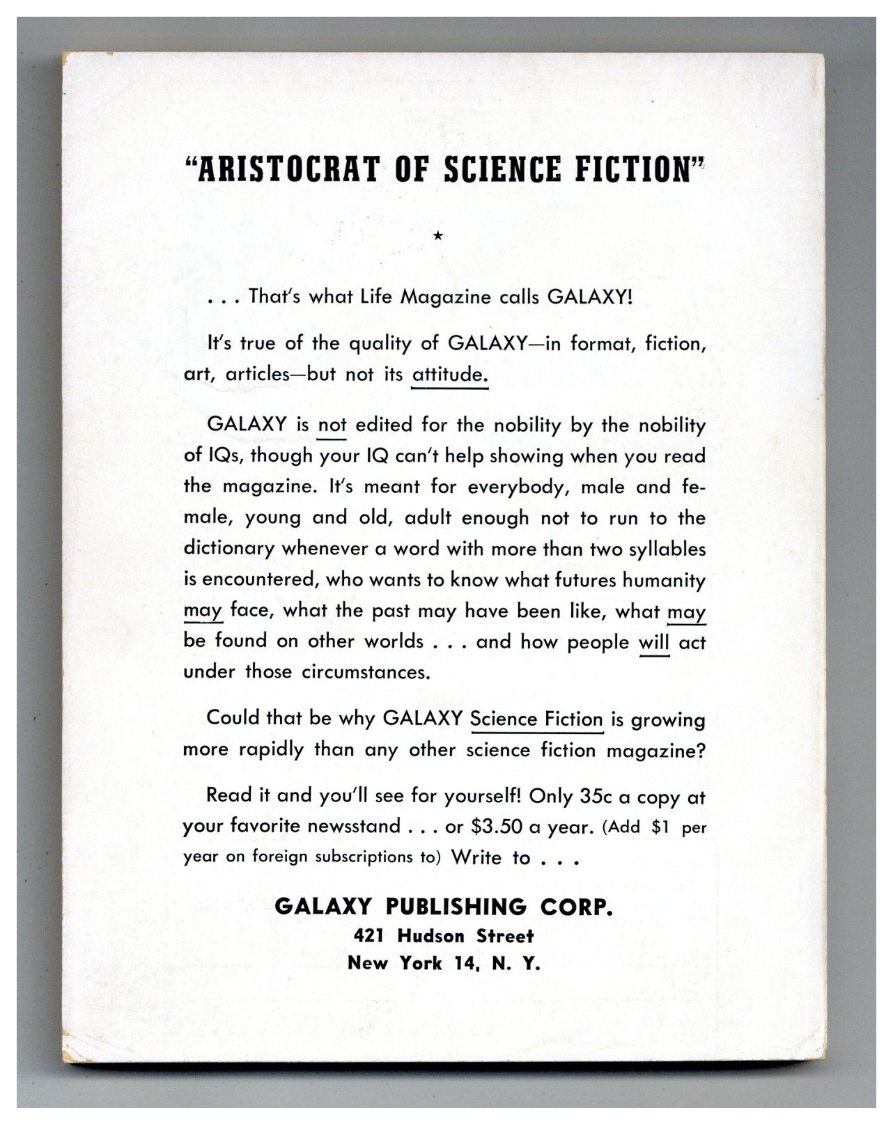 Published Aug 1953 by Galaxy Publications.$2.65- Water damage: Slight. Staple rust: Moderate.