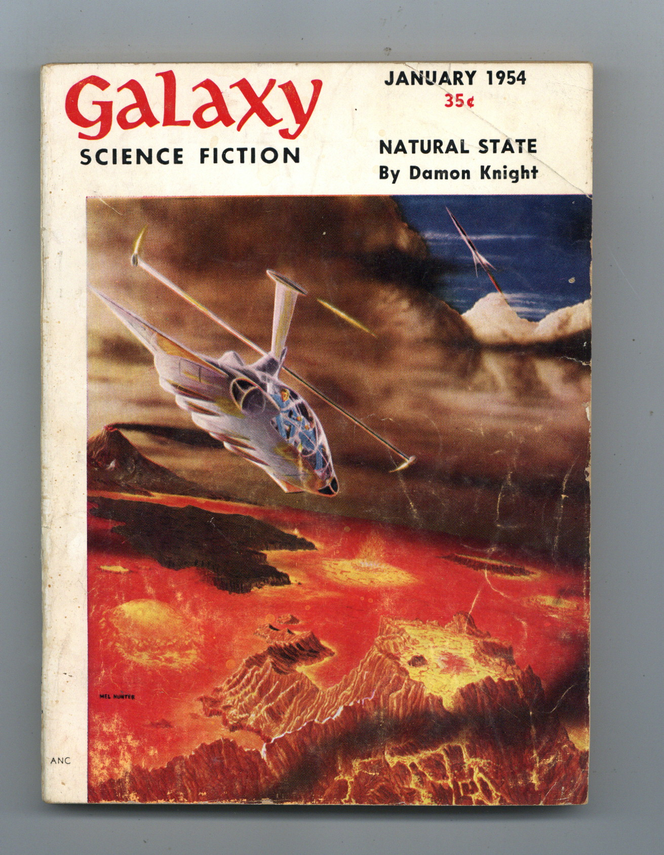 January 1954. Erroneously numbered Volume 7 No. 5 (should have been No. 4). Next issue is also numbered Volume 7 No. 5. Cover by Mel Hunter. Stories: "Natural State" by Damon Knight, "Lulungomeena" by Gordon R. Dickson, "Backlash" by Winston Marks, "The Big Trip Up Yonder" by Kurt Vonnegut, Jr., and "The Holes Around Mars" by Jerome Bixby. 5.25-in. x 7.5-in.; 160 Pages, B&W. Cover price $0.35.