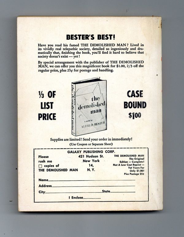 Published Jun 1963 by Galaxy Publications.$2.65- Water damage: Moderate. Staple rust: Slight.