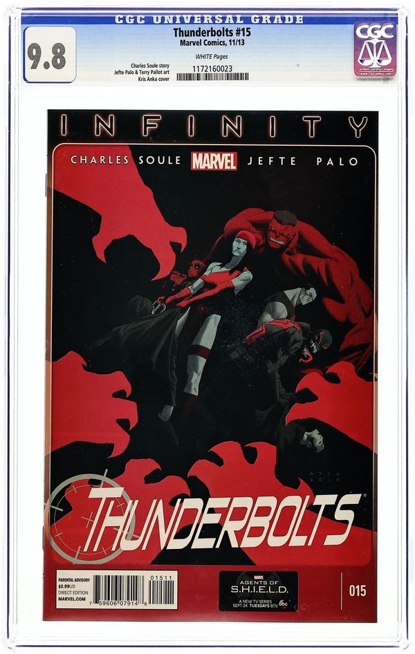 (W) Charles Soule (A) Jefte Palo (CA) Kris Anka INFINITY TIE-IN! Thanos' hordes come crashing down... ...right in the middle of the Thunderbolts' mission! Cover price $2.99.