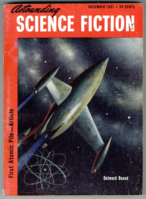 Published Dec 1951 by Street & Smith.$8.00December 1951. Cover by Hubert Rogers. Stories: "Iceworld"(Conclusion) by Hal Clement, "Dune Rollers" by J. C. May, "Hell's Pavement" by Irving E. Cox, Jr., and "The Edge of Forever" by Chad Oliver. Article: "First Atomic Pile" by Corbin Allardice and Edward R. Trapnell. Softcover, 5.5-in x 7.75-in, 172 Pages, B&W. Cover price $0.35.