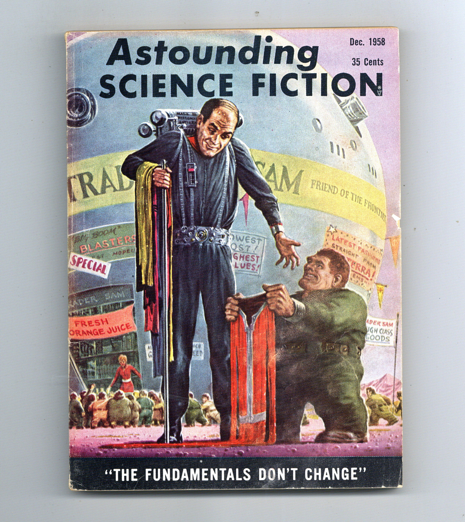 December 1958. Cover by Ed Emsh. Stories: "A Bicycle Built for Brew"(Conclusion) by Poul Anderson, "Ministry of Disturbance" by H. Beam Piper, "The Queen Bee" by Randall Garrett, "Triggerman" by J. F. Bone, "Pieces of the Game" by Mack Reynolds, "Seller's Market" by Christopher Anvil. Softcover, 5.5-in. x 7.5-in.; 162 newsprint pages, B&W. Cover price $0.35.