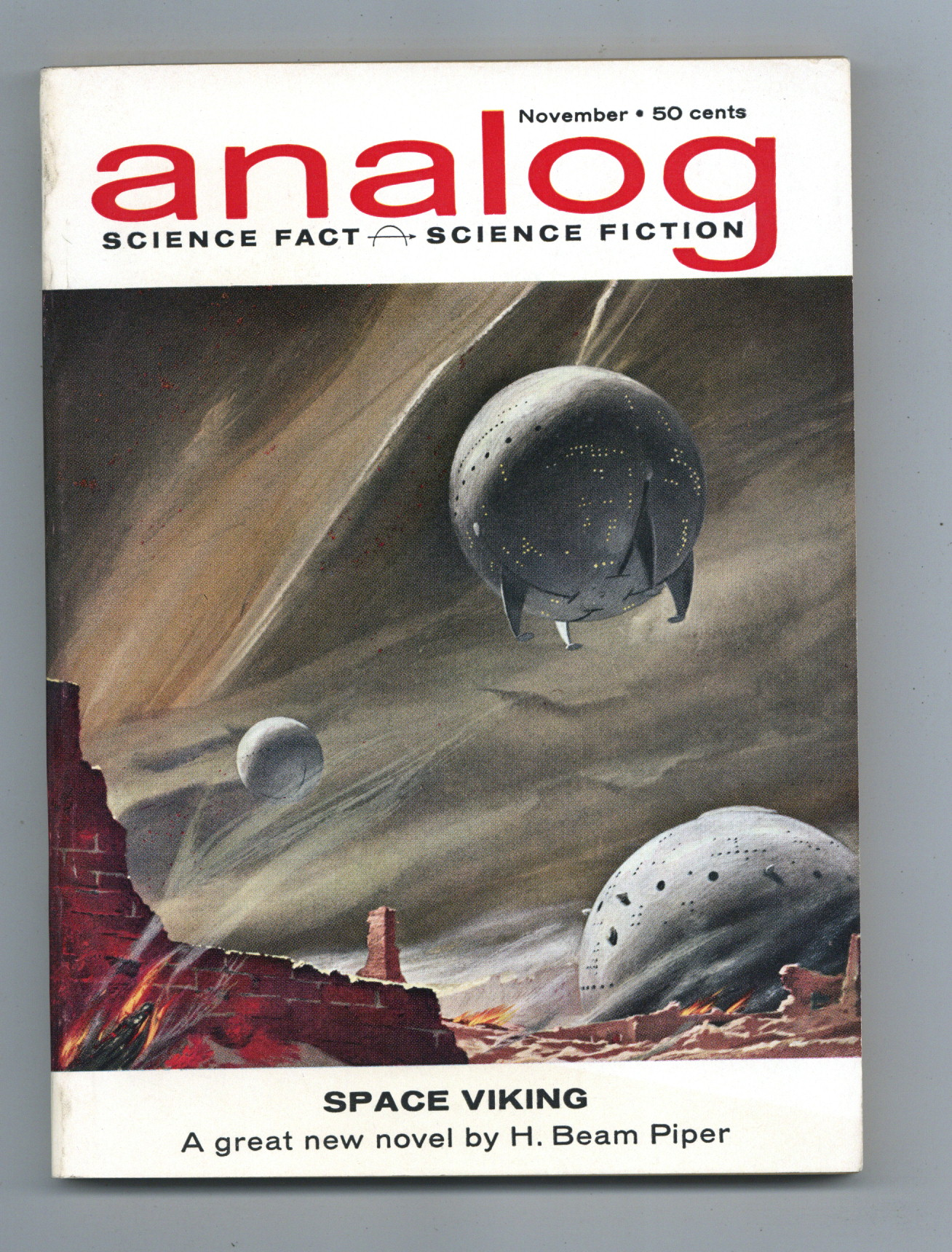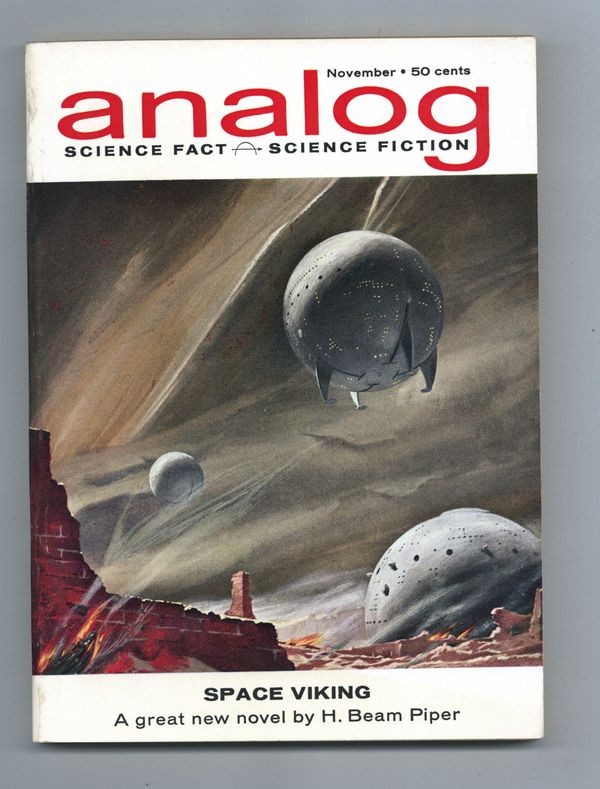 Published Nov 1962 by Dell Magazines.$240.00November 1962. Cover by Schoenherr. Stories: "Space Viking"(Part 1) by H. Beam Piper, "The Servant Problem" by Robert F. Young, "Anchorite" by Johnathan Blake MacKenzie, "Untechnological Employment" by E. M. Clinton, Jr., and "Solomon's Orbit" by William Carroll. Science Fact article: "The Educated Flatworms" by Eric Holmes, M.D. Softcover, 5.5-in. x 7.5-in.; 178 newsprint pages, B&W. Cover price $0.50.