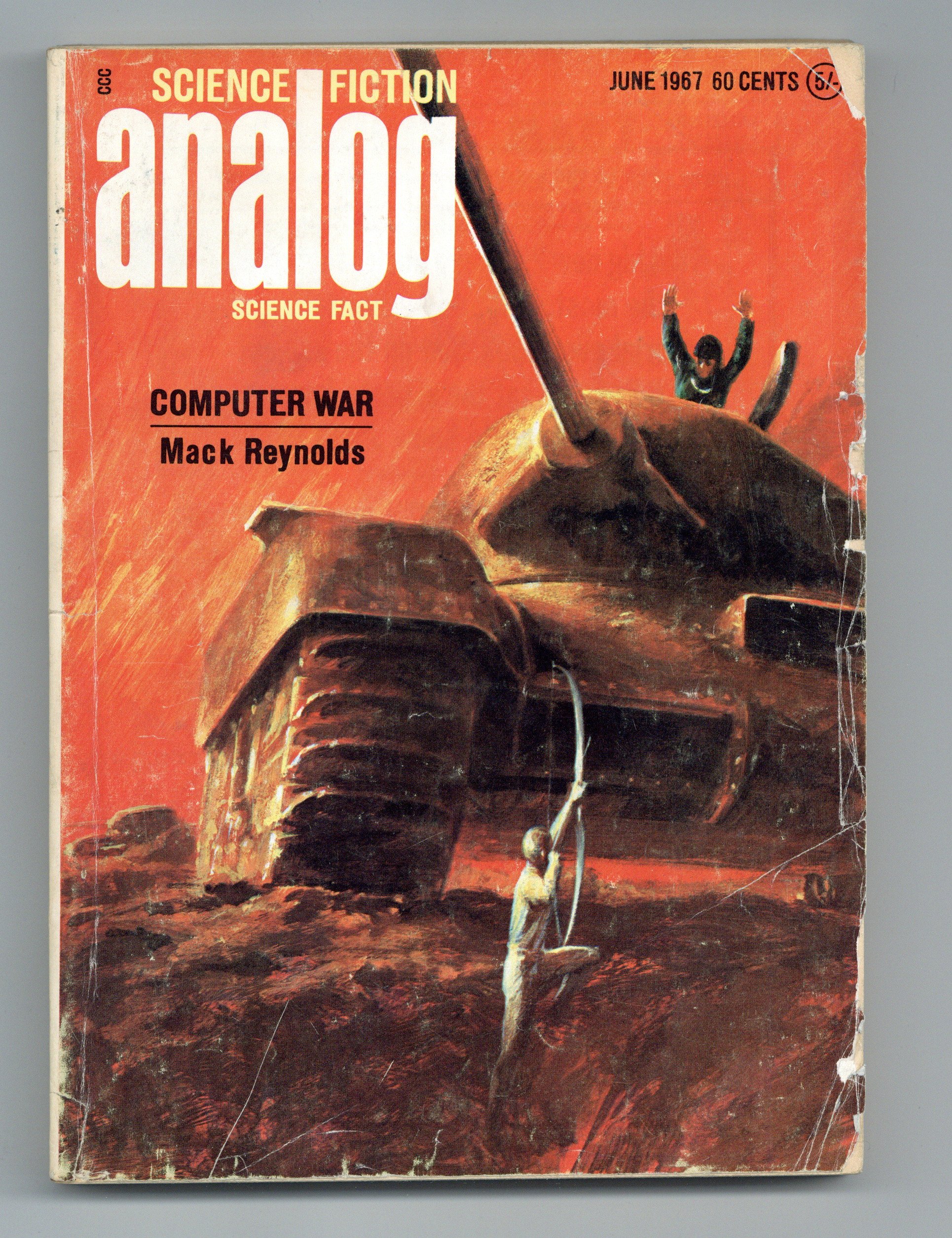 June 1967. Cover by John Schoenherr. Stories: "Computer War"(Part 1) by Mack Reynolds, "The Dukes of Desire" by Christopher Anvil, "The Double-Edged Rope" by Lloyd Biggle, "Security Measure" by Joseph P. Martino, and "Project Lion" by Lawrence A. Perkins. Science Fact article: "Political Science" by Douglas M. Dederer. Softcover, 5.5-in. x 7.5-in.; 178 newsprint pages, B&W. Cover price $0.60.