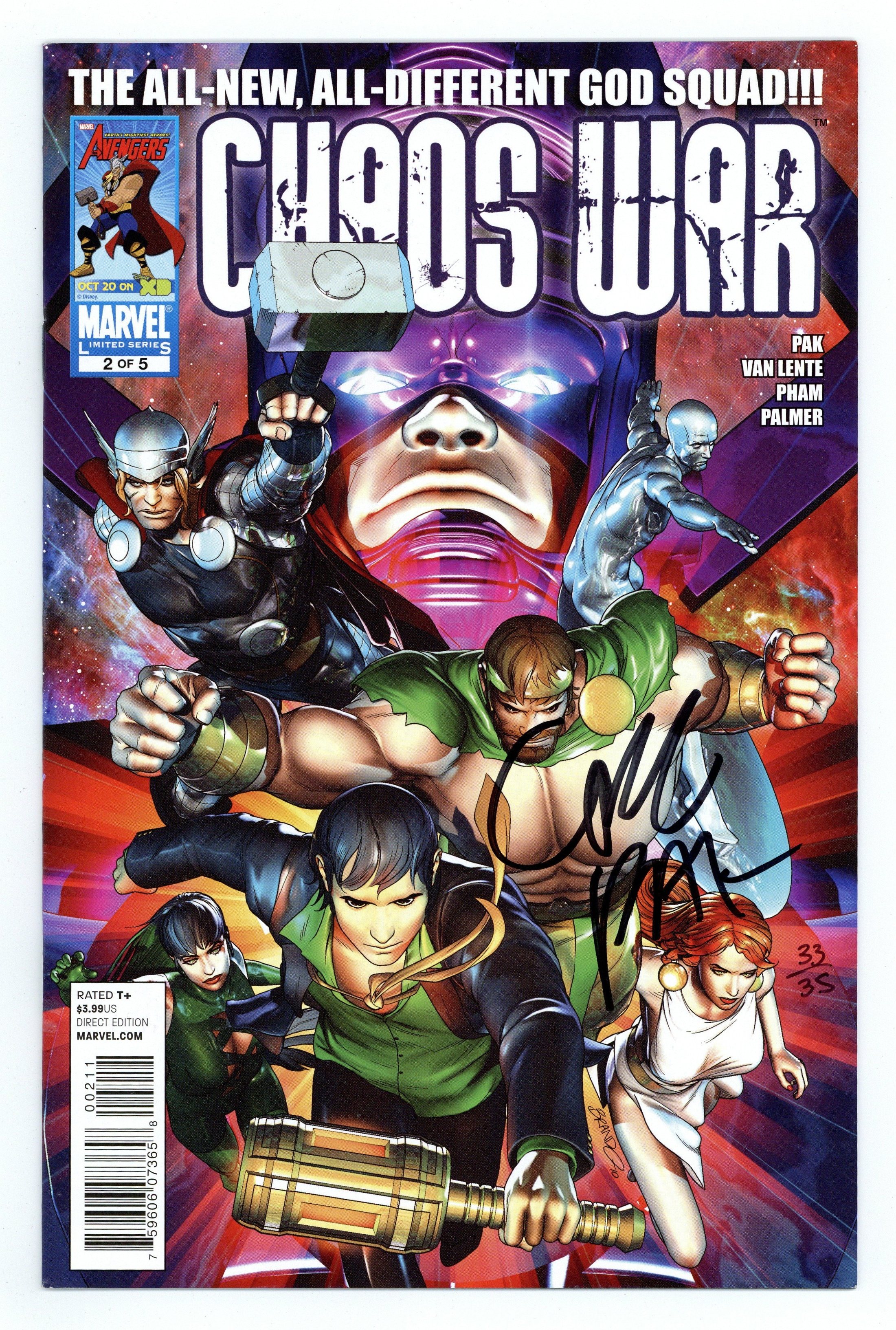 Tags: Avengers$20.00Dynamic Forces Edition Signed by Greg Pak - Limited to 35 copies. Written by GREG PAK & FRED VAN LENTE Penciled by KHOI PHAM Cover by BRANDON PETERSON The premiere event of the fall continues! When the greatest threat the Marvel Universe has ever seen lays waste to reality and brings Earth's mightiest heroes to their knees, who you gonna call? That's right: the all-new, all-different, all-divine GOD SQUAD! The fan-favorite team from SECRET INVASION returns, led by Thor and Hercules. And check out the cosmic heavy-hitters they choose to round out their sacred strikeforce: Galactus, Silver Surfer, Venus, Sersi and Hellstorm! Plus: After the shocking death of a major Marvel character last issue, you'll never believe who the Chaos King has next on his hit list! 32 PGS Cover price $3.99.