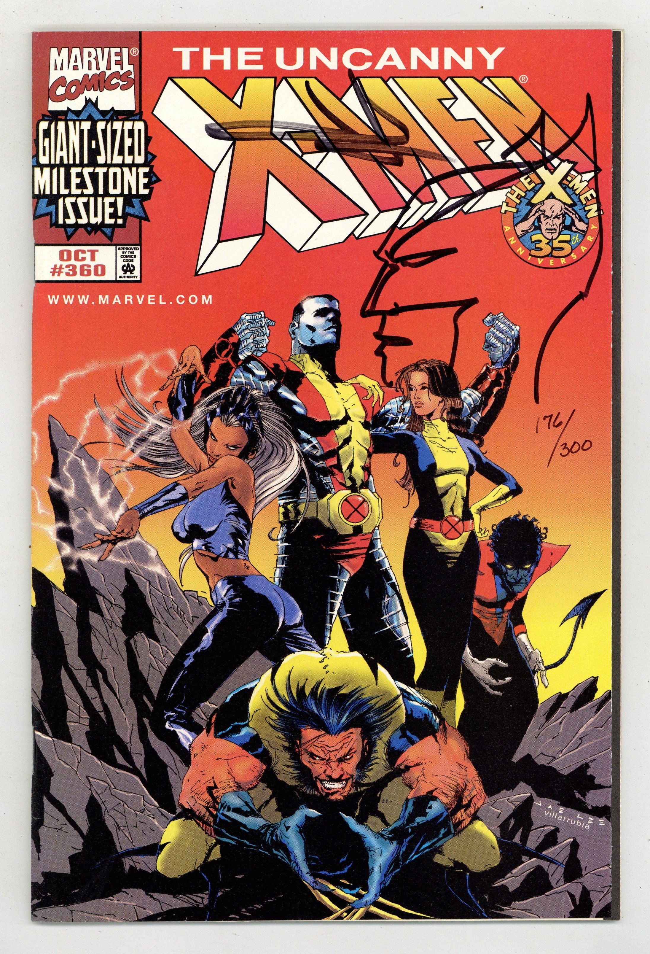 Dynamic Forces Signed Edition with certificate. signed and sketched by Jae Lee. Limited to 300 copies. 35th anniversary issue. "Children of the Atom." Script by Steve Seagle, pencils by Chris Bachalo, inks by Tim Townsend, Jordi Ensign, Aaron Sowd, Jon Sibel, and Peter Palmiotti. Story continues in X-Men 80. Steve Rude pin-up. 54 pgs.