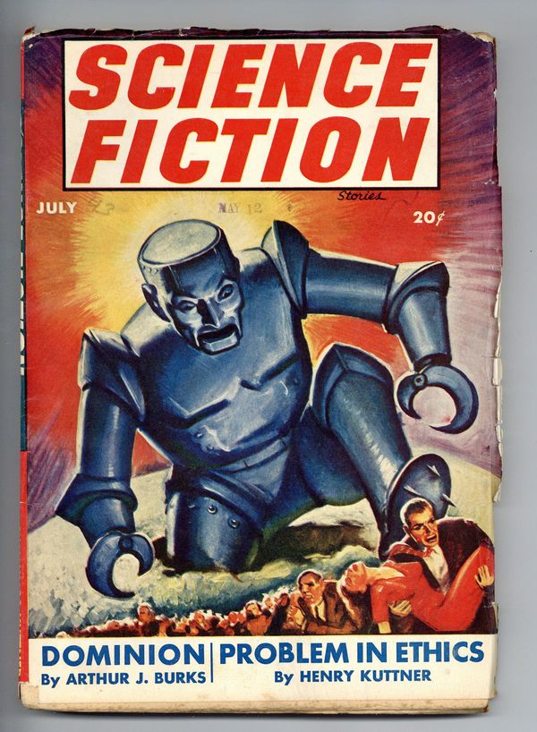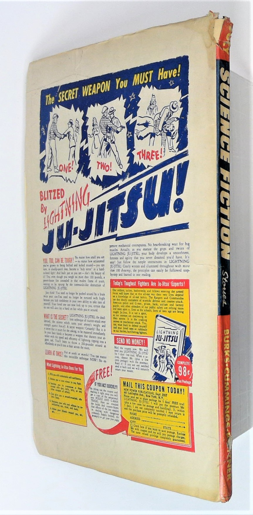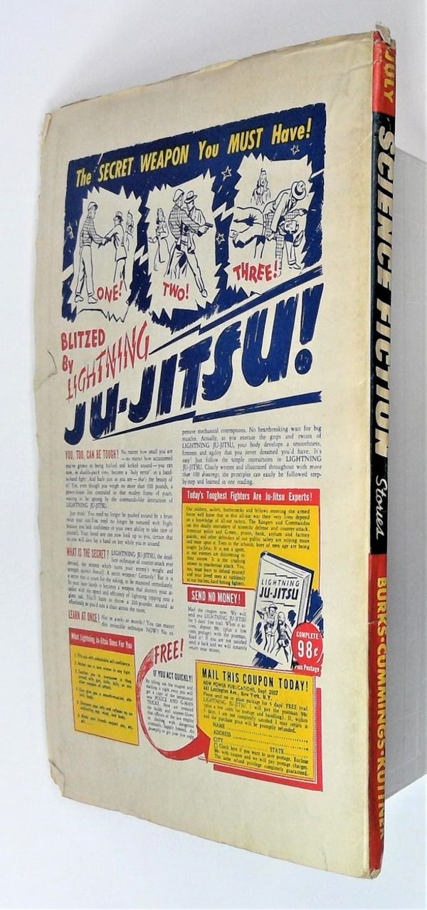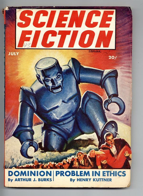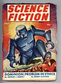 July 1943. Cover by Milton Luros. Stories: "Dominion" by Arthur J. Burks, "Infiltration" by Clifford D. Simak, "Blackout" by Damon Knight, "Problem In Ethics" by Henry Kuttner, "The Man Who Saved New York" by Ray Cummings, "The Stellar Vampires" by Frank Belknap Long, "The Machine That Changed History" by Robert Bloch, and "The Answer Out of Space" by Graph Waldeyer. Softcover, 7-in x 9-in, 112 Pages, B&W. Cover price $0.20.