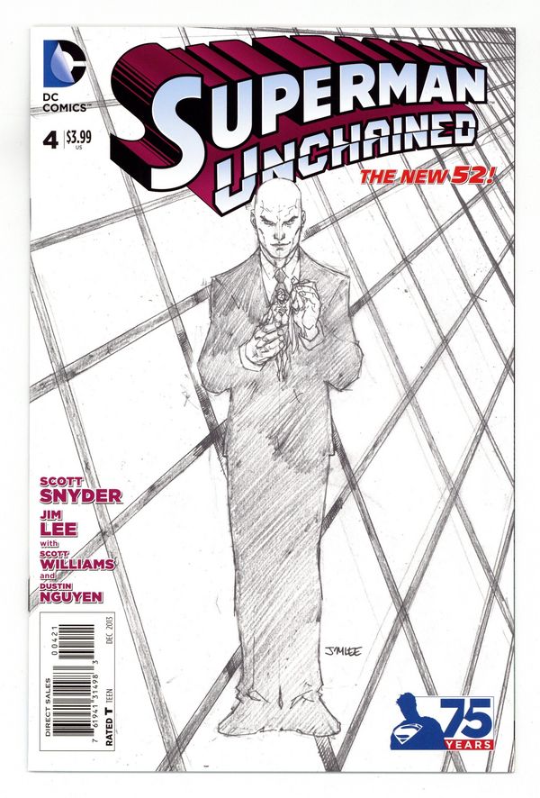 Limited 1 for 300 Variant Cover by Jim Lee, Scott Williams (W) Scott Snyder (A) Jim Lee & Various Superman rushes to stop Ascension's attack and kicks off a huge battle with Wraith! Besieged on all sides, Superman has no choice but to call in some powerful friends... Cover price $3.99.