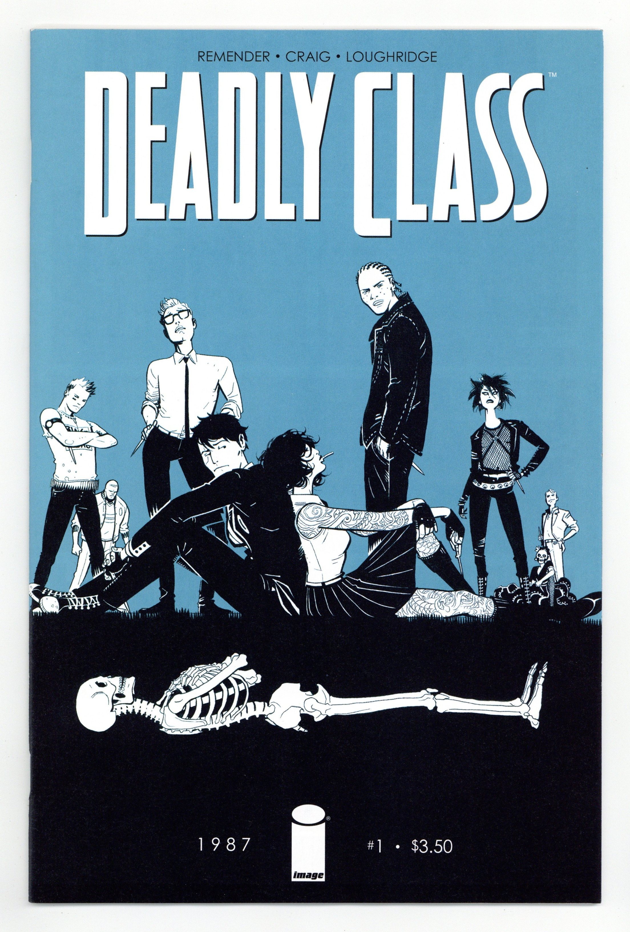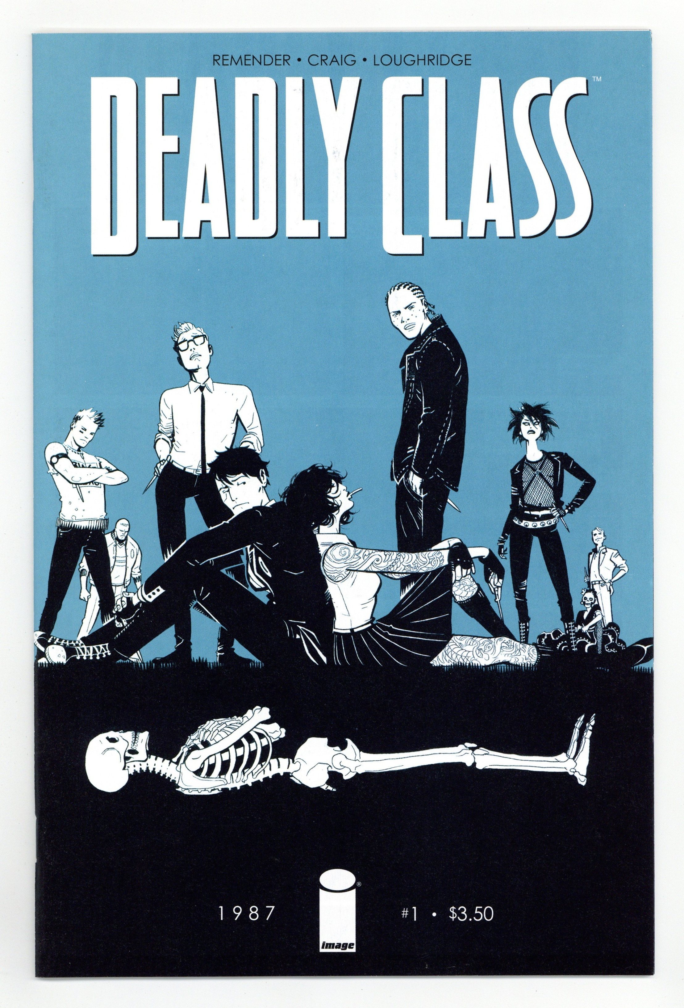Written by Rick Remender. Art and Cover by Wesley Craig, Lee Loughridge. It's 1987. Marcus Lopez hates school. His grades suck. He has no money. The jocks are hassling his friends. He can't focus in class, thanks to his mind constantly drifting to the stunning girl in the front row and the Dag Nasty show he has tickets to. But the jocks are the children of Joseph Stalin's top assassin, the teachers are members of an ancient league of assassins, the class he's failing is 'Dismemberment 101,' and his crush, a member of the most notorious crime syndicate in Japan, has a double-digit body count. Welcome to the most brutal high school on Earth, where the world's top crime families send the next generation of assassins to be trained. Murder is an art. Killing is a craft. At King's Dominion High School for the Deadly Arts, the dagger in your back isn't always metaphorical, nor is your fellow classmates' poison. Join writer RICK REMENDER with rising star WESLEY CRAIG (Batman) and legendary colorist LEE LOUGHRIDGE (Fear Agent) to reminisce about the mid-1980s underground through the eyes of the most damaged and dangerous teenagers on Earth. Cover price $3.50.