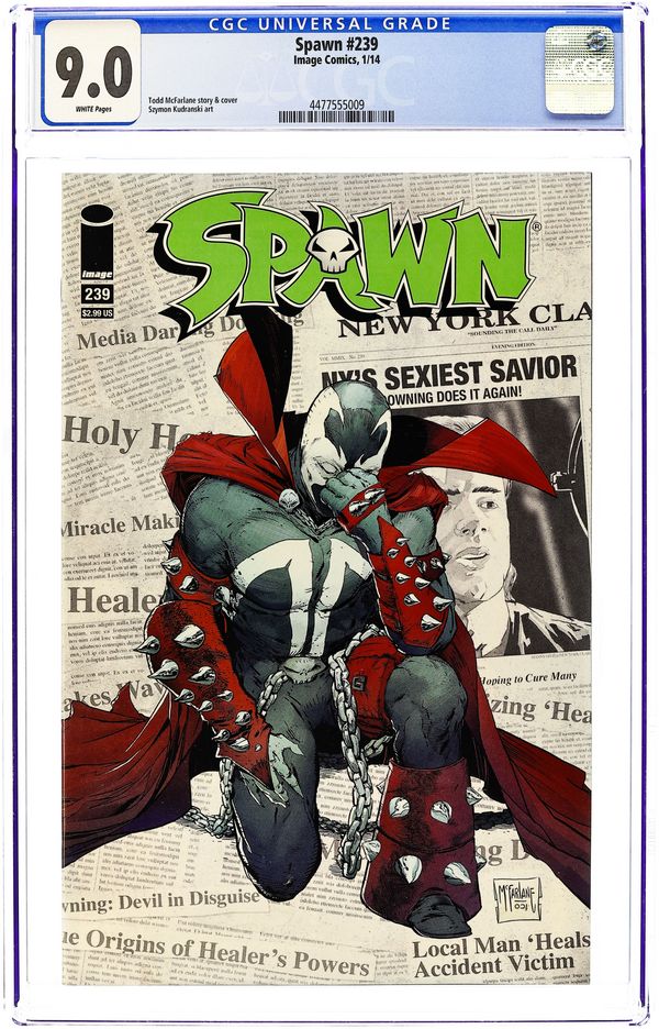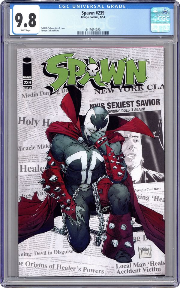 Written by Todd McFarlane. Art by Szymon Kudranski. Cover by Todd McFarlane. A VAMPIRE ARMY RISES AND NEW LESSONS ARE LEARNED AS THE DARKNESS SPREADS! Cogliostro continues his mentoring of Jim. Cog's latest lesson? Whatever control Jim thinks he has over the K7-Leetha is a facade, and the only way for the world's newest Hellspawn to truly take command is to STEP INTO THE LIGHT! Meanwhile, Daniel Kilgore visits one of the innocent victims 'healed' by Jim's gifts. Cover price $2.99.