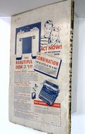 - Multiple book length creases on front cover. Front cover detached 10%. Back cover detached 10%. Water damage: Moderate. Staple rust: Moderate.