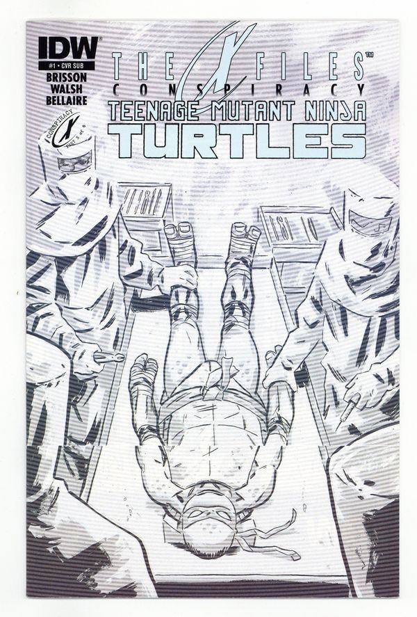 Published Feb 2014 by IDW Publishing.$20.00Variant Cover by Michael Walsh (W) Ed Brisson (A) Michael Walsh. The Turtles are doing their best to avoid trouble in Northampton. Unfortunately, trouble finds them in the form of the Lone Gunmen! The fate of the world depends on the Gunmen getting the reclusive Turtles' help. Add in an undead menace and things are going to get downright dangerous! Cover price $3.99.