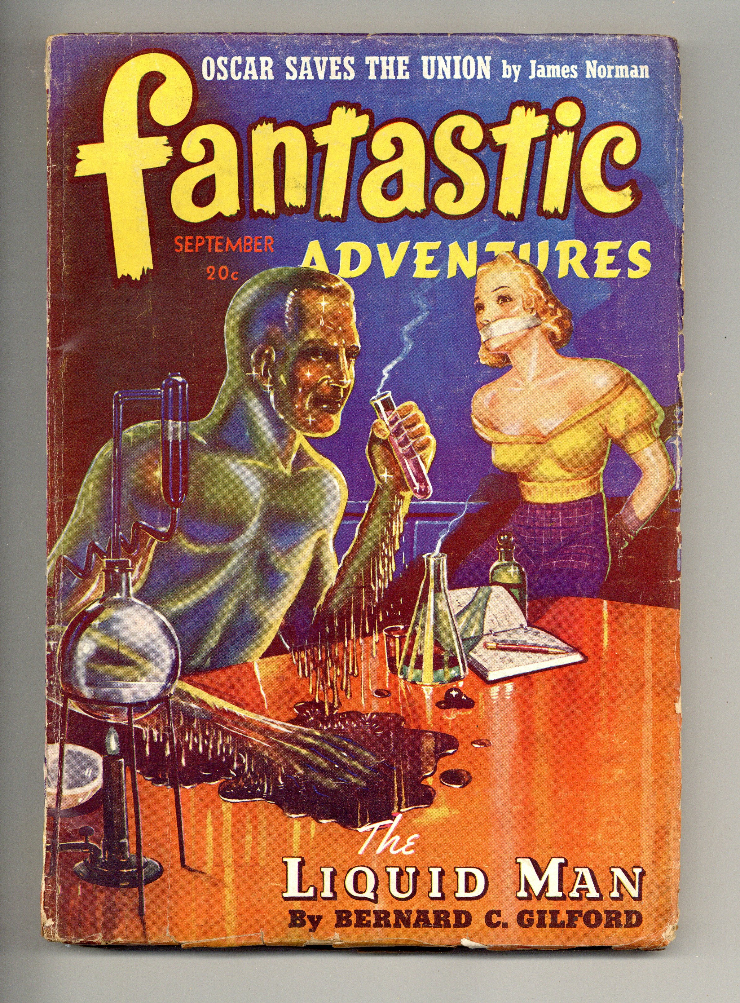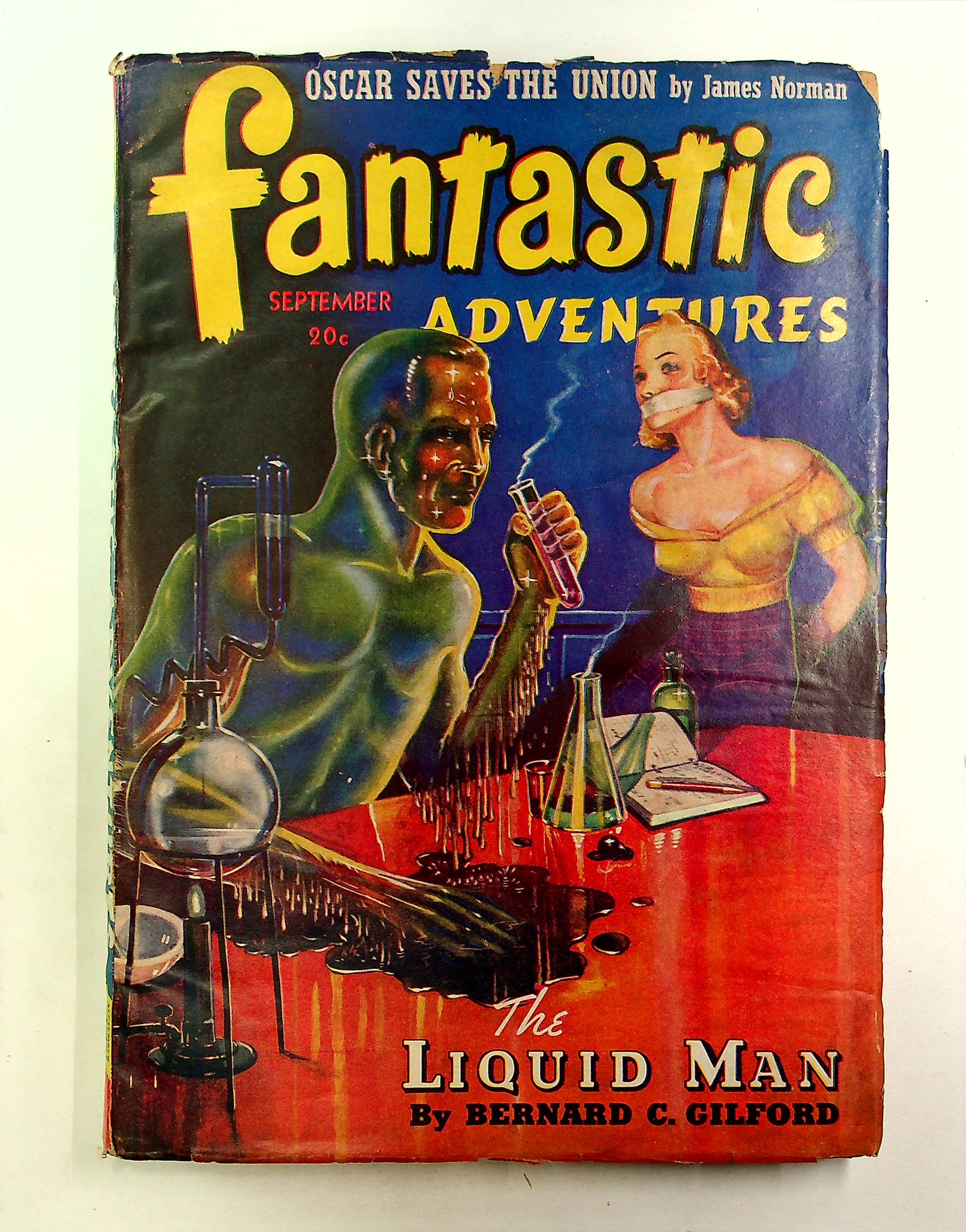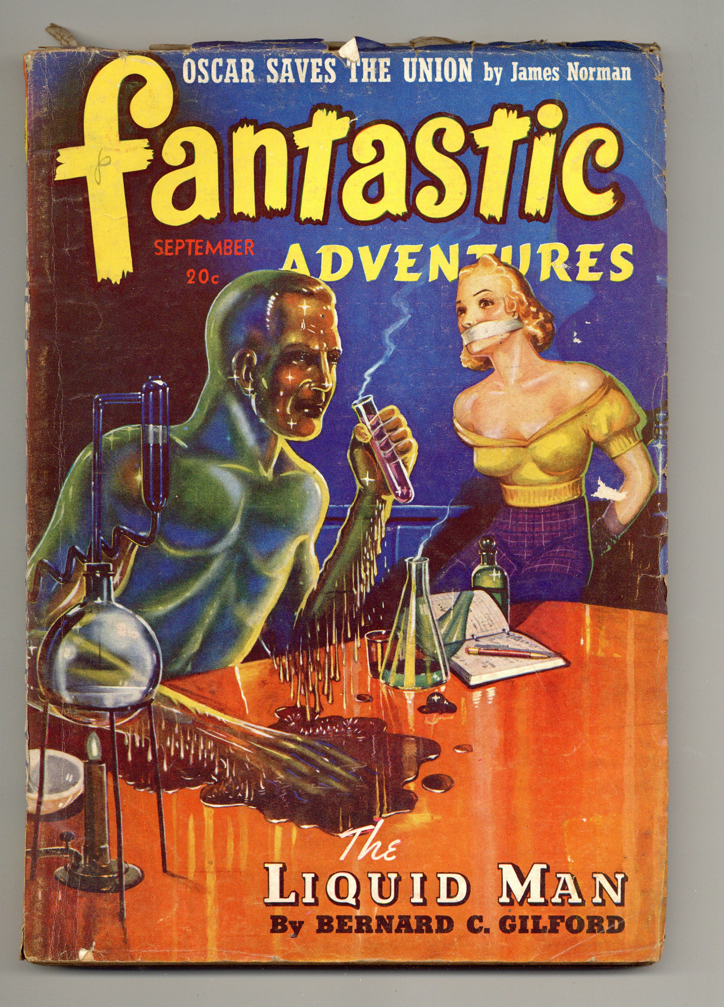 Volume 3, Issue 7 - September 1941. Cover by Robert Fuqua. Stories: "The Liquid Man" by Bernard C. Gilford, "Oscar Saves The Union" by James Norman, "Miracle at Dunkirk" by John York Cabot, "Wilbury's Incredible Gadget" by Donald Bern, "The Pulsating Planet" by John Broome, and "The Man Who Saw Through Time" by Leonard Raphael. Illustrations by Robert Fuqua, Julian S. Krupa, Frank R. Paul, Ralph Johnson, R. Newman, Rod Ruth, and Joe Sewell. Pulp, 7-in x 10-in, 146 Pages, B&W. Cover price $0.20.