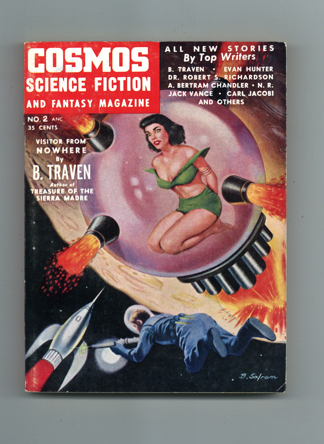 Published Nov 1953 by Star Publications.$28.00Volume 1, Issue 2 - November, 1953. Stories: "Visitor From Nowhere" by B. Traven, "The Gentleman Is An Epwa" by Carl Jacobi, "Shape-Up" by Jack Vance, "Expatriate" by Larry M. Harris, "Hot Squat" by A. Bertram Chandler, "With Intent To Kill" by John Jakes, "Terran Menace" by N.R., "Outside In The Sand" by Evan Hunter, and "The Guilty" by Alfred Coppel. Scientific Articles: "Dere Sir--What Did You Do To The Moon?" by Robert S. Richardson, "Our Solar H-Bomb" by F.M. Turner. Softcover Pulp Digest, 5-in x 7-in, 128 Pages, B&W. Cover price $0.35.