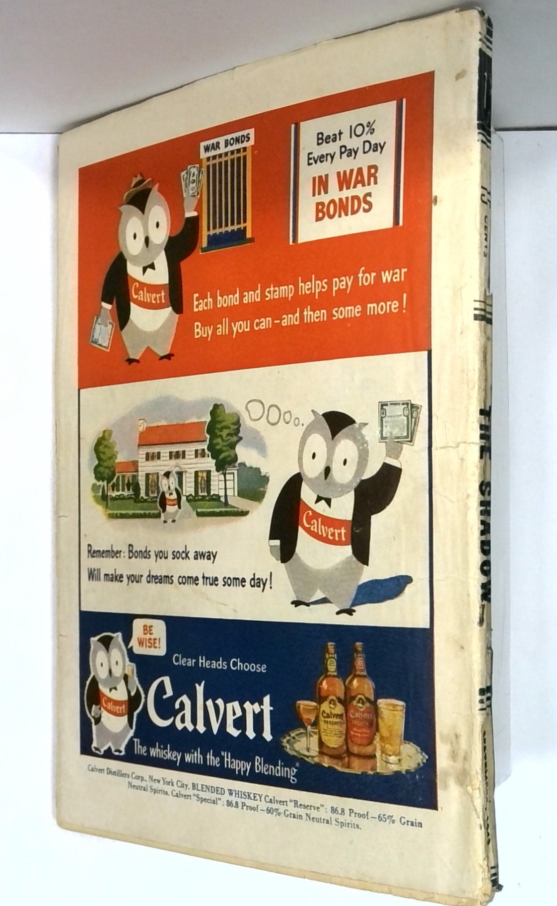 September 1943. Cover by Modest Stein. The Shadow stars in "House of Ghosts" by Maxwell Grant, "Murder Mad" by Theodore Tinsley, "Clue For The Kid" by Grant Lane, "Blue Murder" by Fredric Brown, and "Unfit For Active Service" by E.E. Halleran. Illustrations by Orban. Softcover Pulp, 6 1/2-in x 9-in, 146 Pages, B&W. Cover price $0.15.