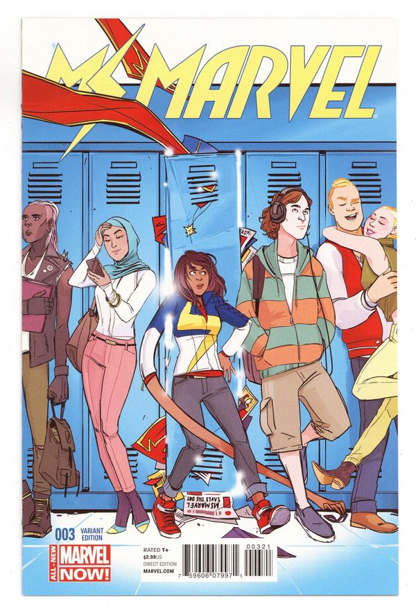 $6.40Limited 1 for 50 Retailer Incentive Variant Cover by Annie Wu. Written by C. Willow Wilson. Art by Adrian Alphona. The All-New Ms. Marvel has already gained international fame. But in Kamala's case, star-power comes with a whole lot of... awkwardness. Find out why the most exciting new Marvel hero is also the most loveable! 28 pages, full color. Cover price $2.99.