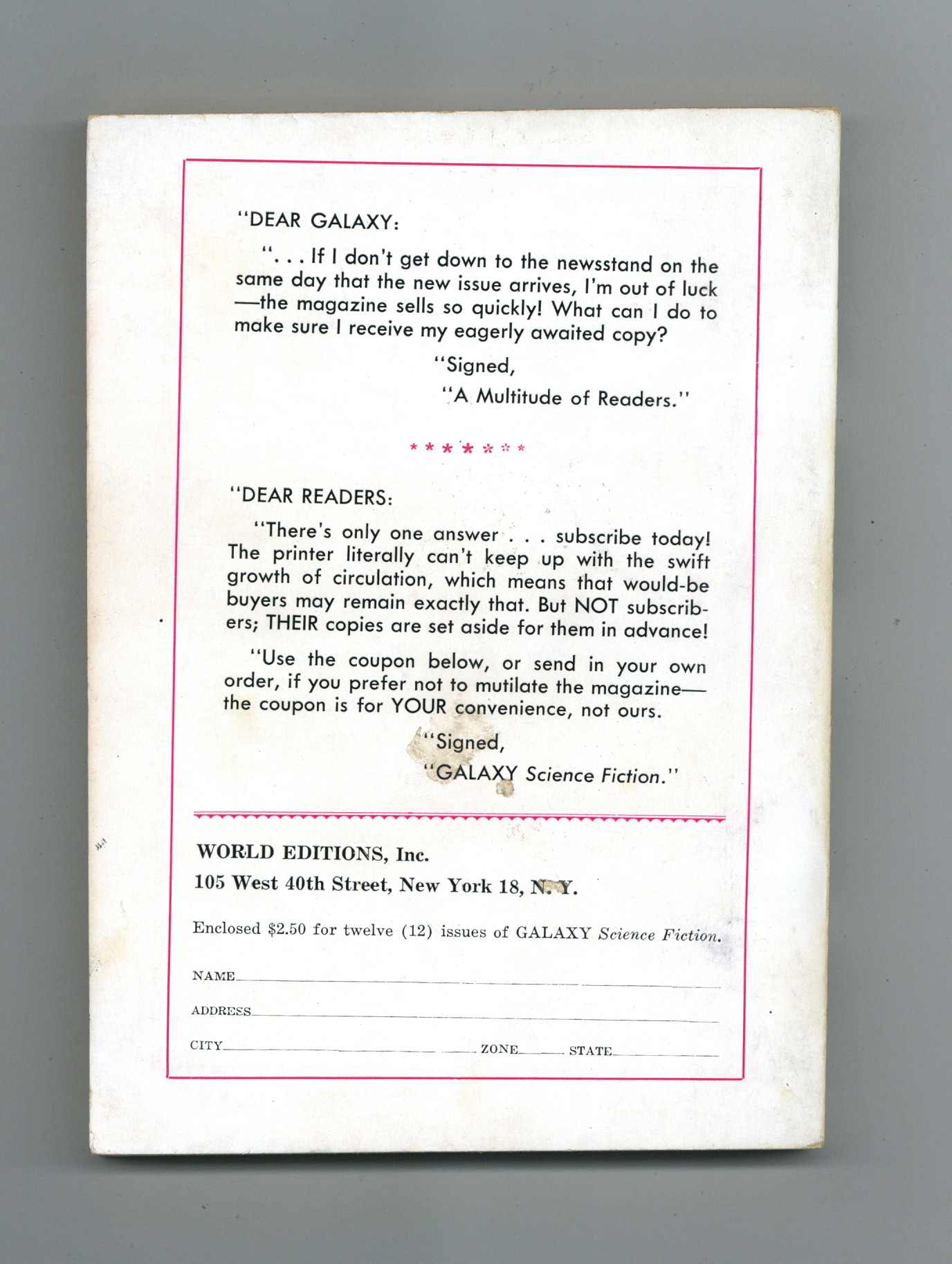 Published 1951 (est.) by Galaxy Publishing.$2.65