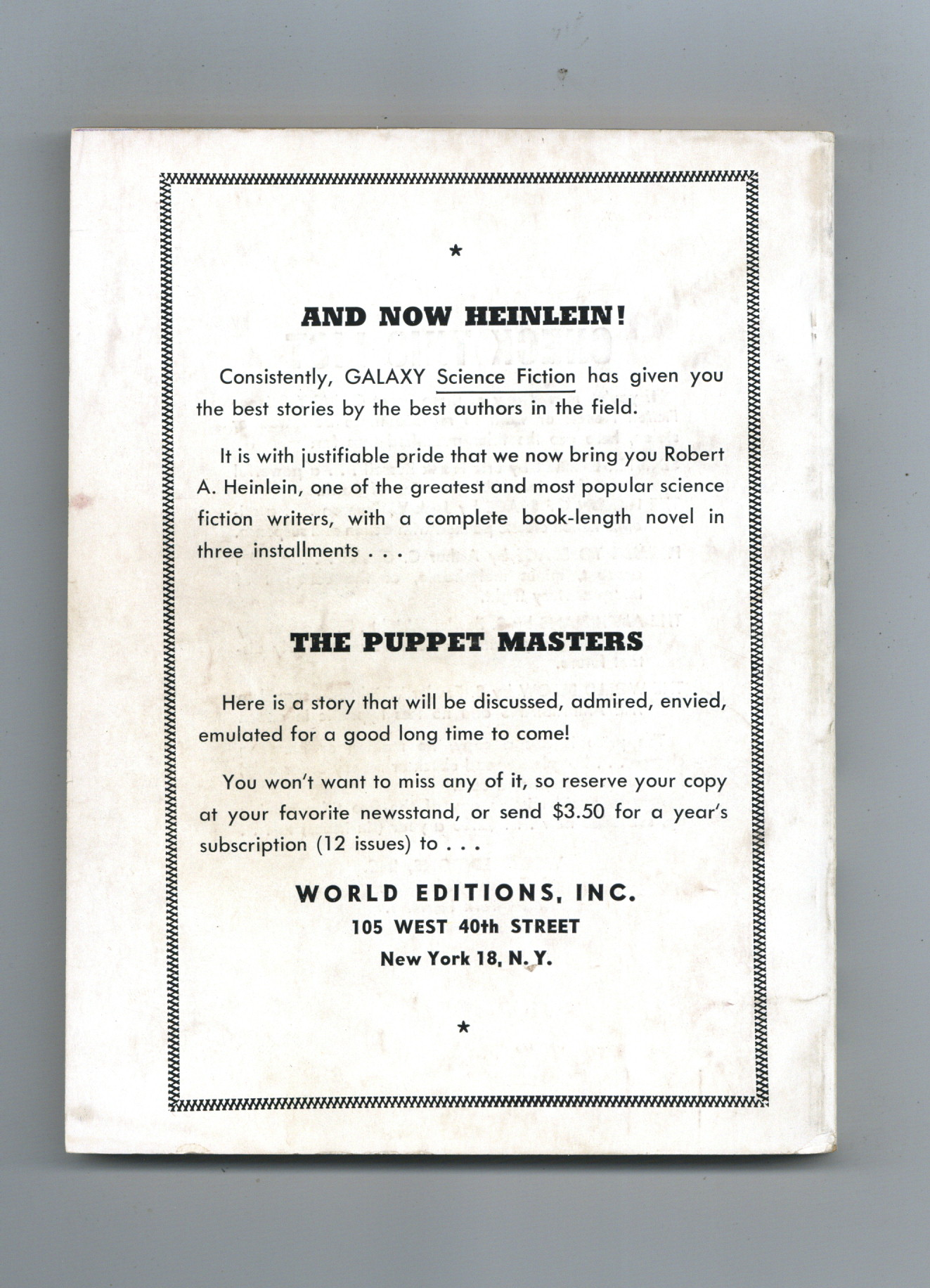 Published 1951 (est.) by Galaxy Publishing.$25.00- Staple rust: Slight.
